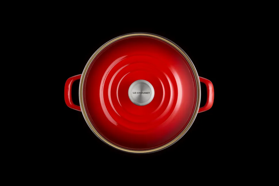 Recognized for its strength and durability, as well as its beauty and quality, Le Creuset produced the first enameled cast iron cookware nearly a century ago. A tradition of maintaining the finest culinary craftsmanship, combined with the latest innovations, means Le Creuset is known for blending classic form with real function and that it’s made for home cooks and professional chefs alike. The 10 qt. Stockpot in Cerise features tall, straight sides and generous capacity, making it ideal for preparing soups, stocks, seafood boils, and pasta for a crowd. Crafted from fast-heating carbon steel and finished in a soft glaze, it brings utility and beauty to large-scale cooking.