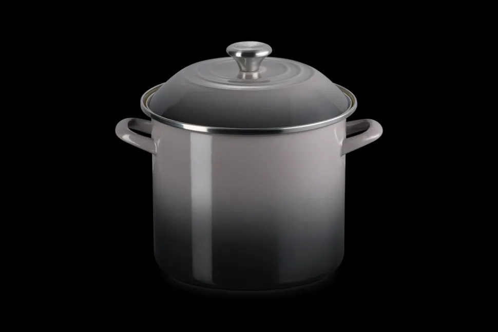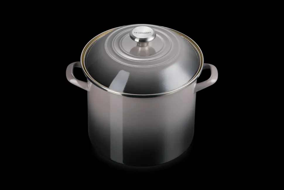 Recognized for its strength and durability, as well as its beauty and quality, Le Creuset produced the first enameled cast iron cookware nearly a century ago. A tradition of maintaining the finest culinary craftsmanship, combined with the latest innovations, means Le Creuset is known for blending classic form with real function and that it’s made for home cooks and professional chefs alike. The 10 qt. Stockpot in Oyster features tall, straight sides and generous capacity, making it ideal for preparing soups, stocks, seafood boils, and pasta for a crowd. Crafted from fast-heating carbon steel and finished in a soft glaze, it brings utility and beauty to large-scale cooking.