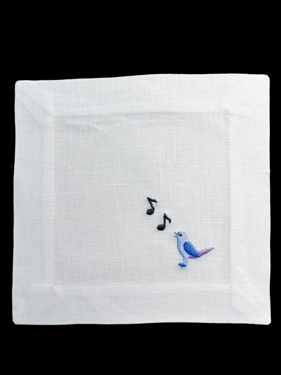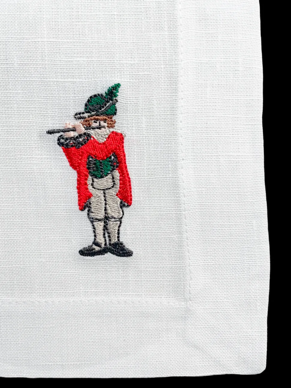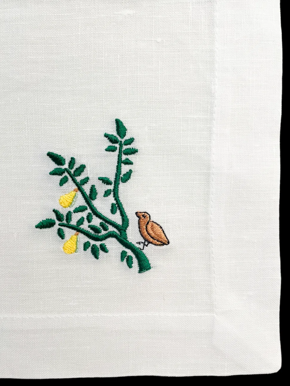 Set of 12. 100% linen. Embroidered in the USA with bleach-safe embroidery.
