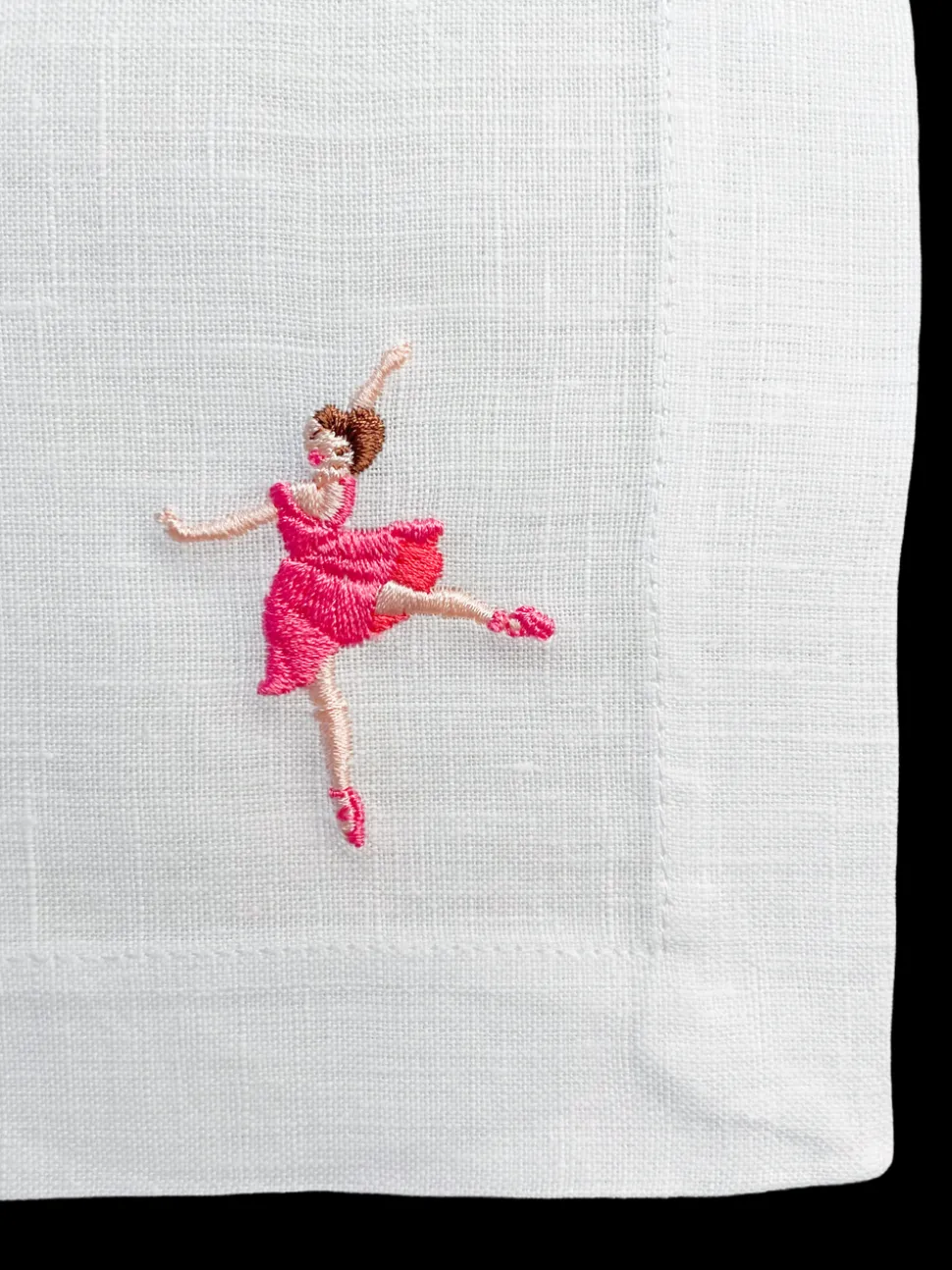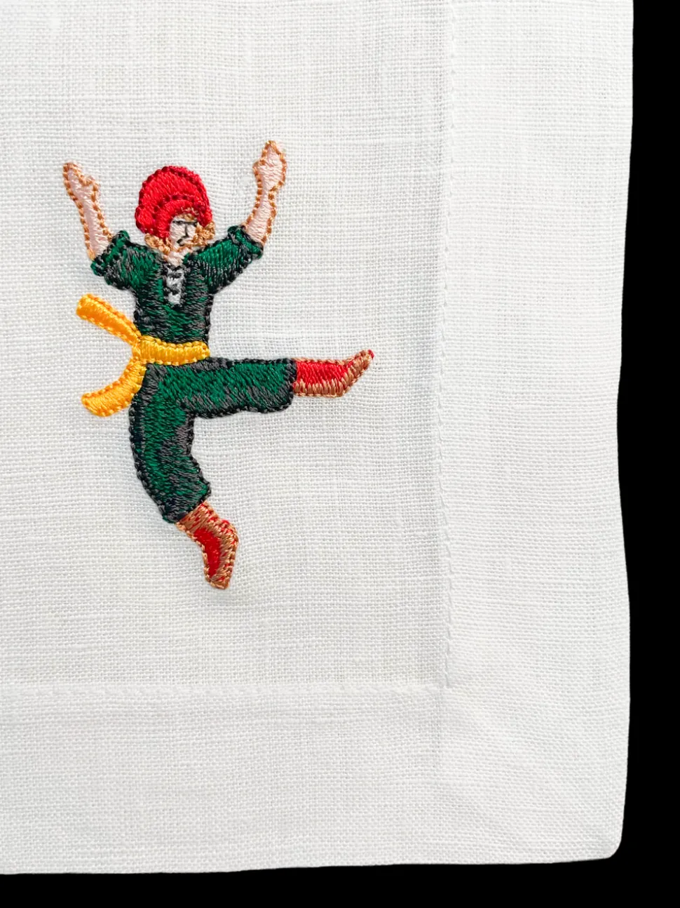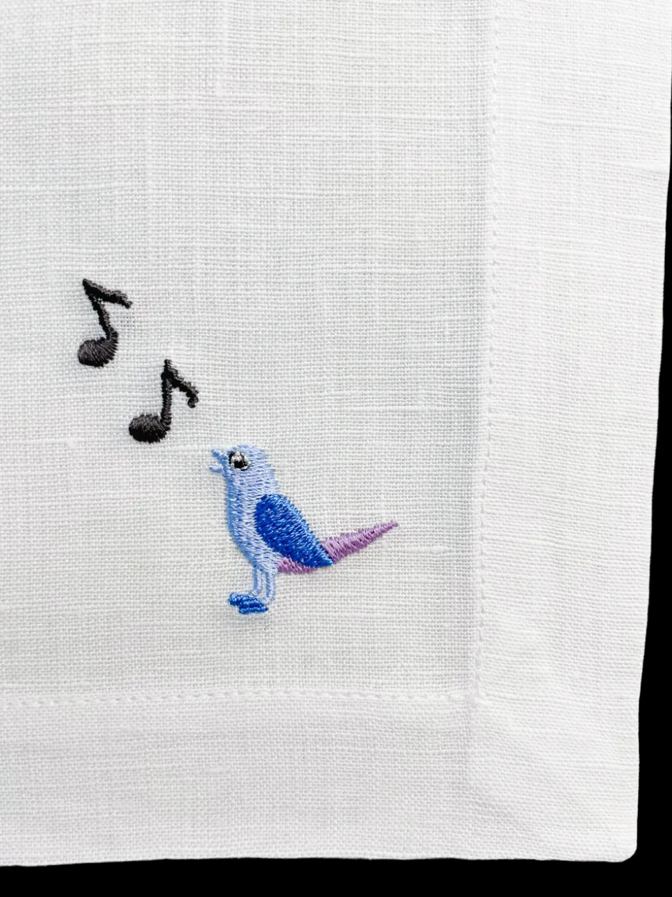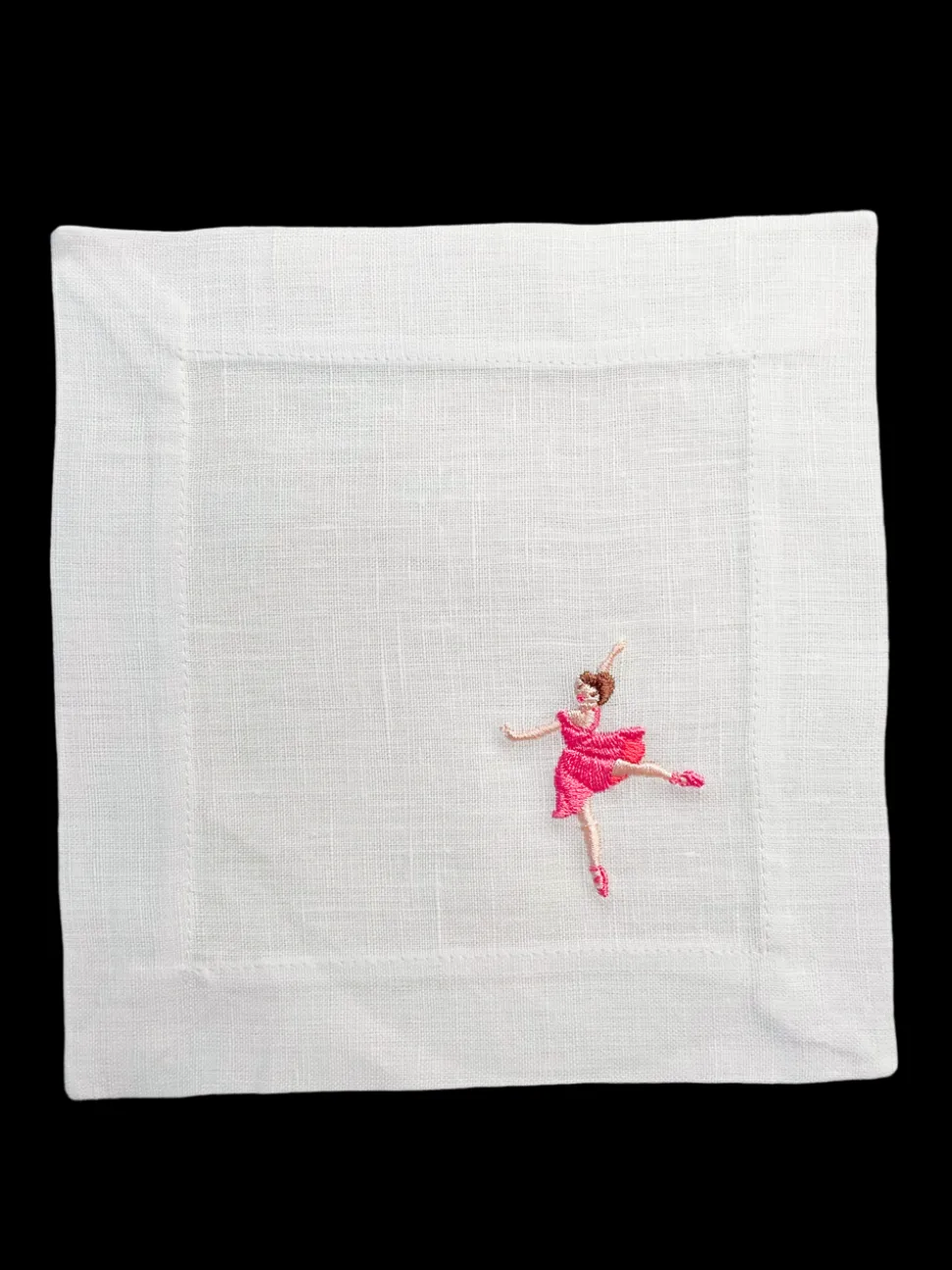 Set of 12. 100% linen. Embroidered in the USA with bleach-safe embroidery.