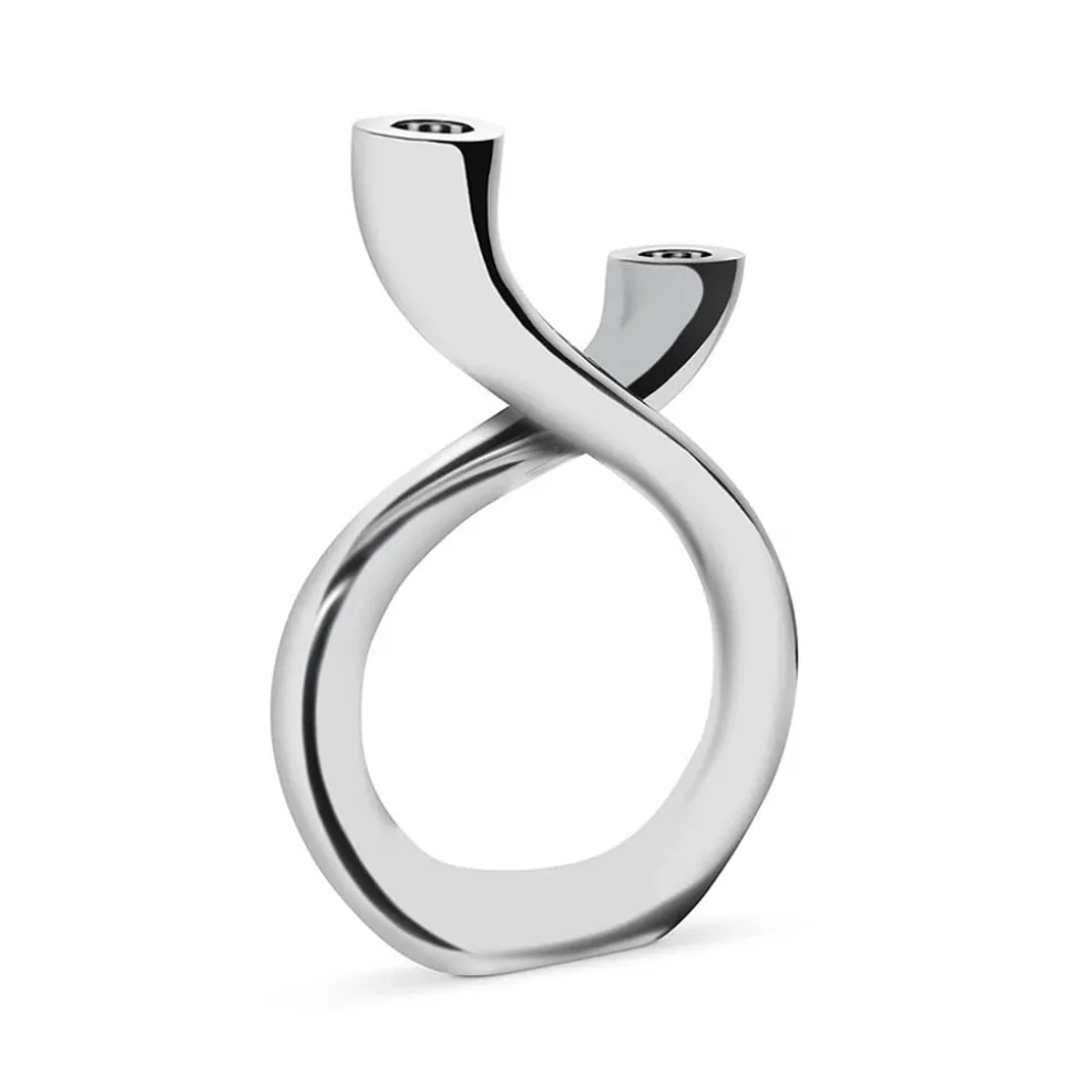 Recognized for over 60 years of award-winning design, Nambé blends timeless, refined beauty with everyday function. With pieces featured in world-renowned museums, its serveware, barware, home decor, and gifts reflect a legacy of artistry and innovation. Create the ultimate tablescape with the 12″ Tango Candleholder. Embracing the art of the tango; a dance involving the flow between two partners that is ever changing and unpredictable. It can hold two taper candles.