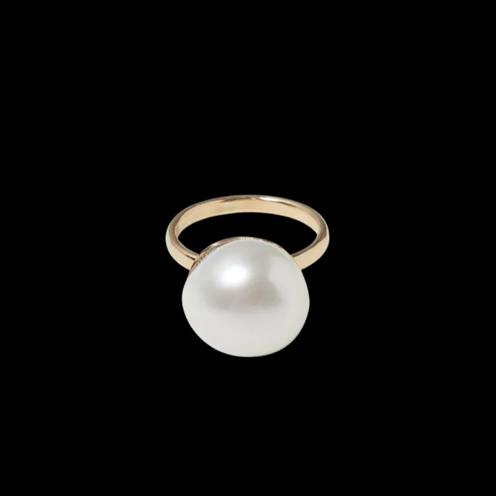 Designer Chan Luu creates homeware and jewelry that unites her passion for artisan-made crafts with a reverence for organic forms found in nature. The 14k Monaco Ring White Pearl is a luminous freshwater pearl held within 14k solid gold. This piece’s bold silhouette can be worn on its own or paired with subtle gold rings. An elegant statement that radiates timelessness.