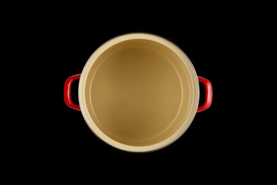 Recognized for its strength and durability, as well as its beauty and quality, Le Creuset produced the first enameled cast iron cookware nearly a century ago. A tradition of maintaining the finest culinary craftsmanship, combined with the latest innovations, means Le Creuset is known for blending classic form with real function and that it’s made for home cooks and professional chefs alike. The 16 qt. Stockpot in Cerise features tall, straight sides and generous capacity, making it ideal for preparing soups, stocks, seafood boils, and pasta for a crowd. Crafted from fast-heating carbon steel and finished in a soft glaze, it brings utility and beauty to large-scale cooking.