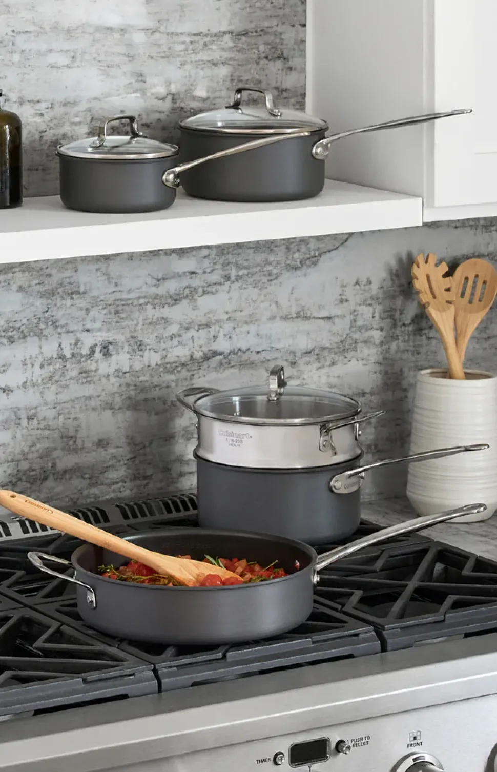 Founded in 1971 by Carl Sontheimer, Cuisinart revolutionized American home cooking by introducing the food processor, inspired by French culinary innovation. Now a leading name in premium kitchen appliances, the brand continues to champion creativity and excellence through thoughtfully designed tools embraced by chefs and home cooks alike. The 17-Piece Chef’s Classic® Nonstick Hard Anodized Set delivers exceptional versatility and performance, offering a comprehensive suite of cookware for everything from everyday meals to gourmet endeavors.