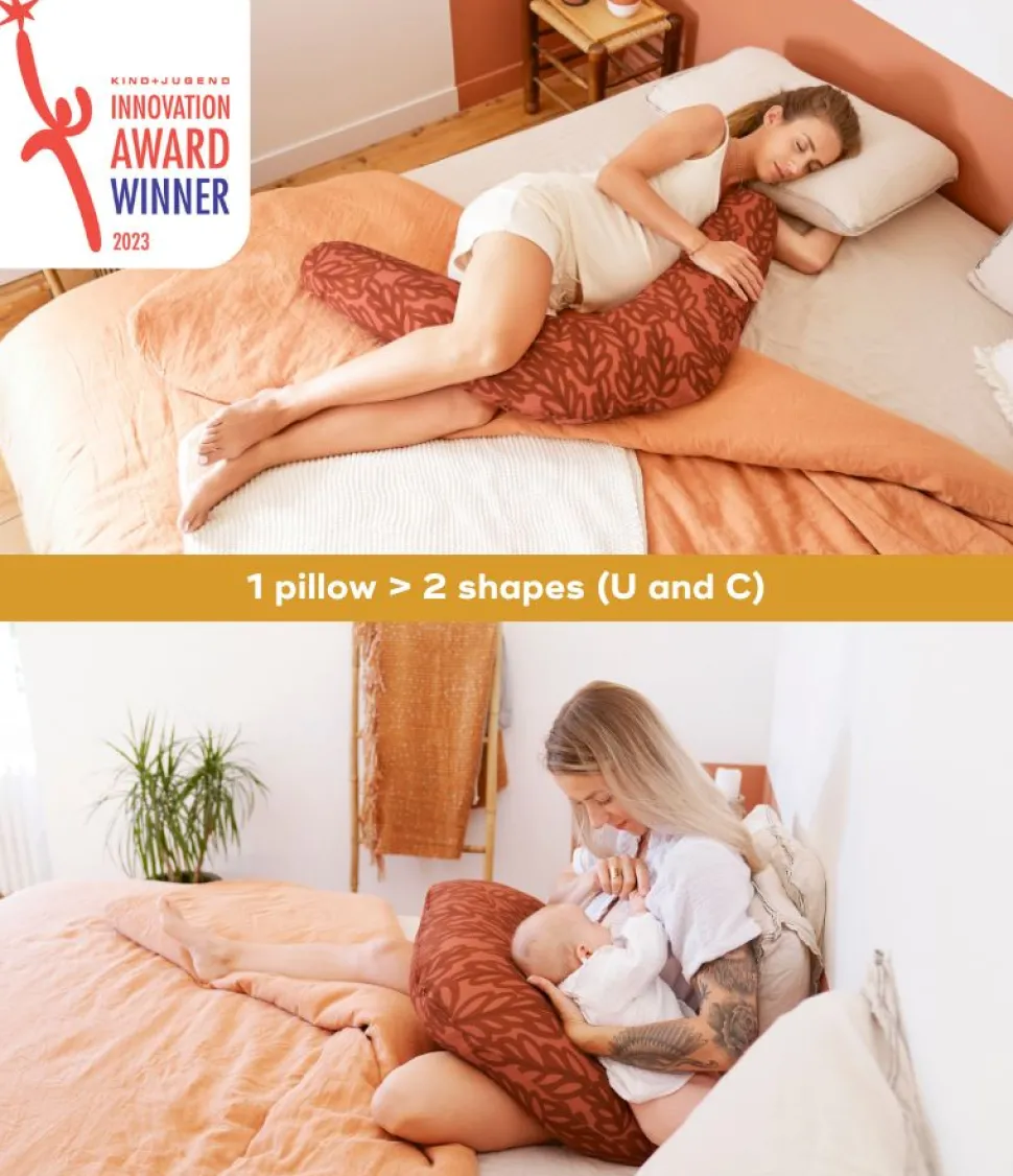 Created by three French students, working together with parents and experts, Babymoov looks to innovate our approaches to childcare. With safety, sustainability, and practicality at top of mind, each product is a journey towards a greener, healthier, happier future for babies and parents alike. The 2-in-1 Pregnancy & Infant Feeding Pillow is designed to follow the natural contours of the body, giving support for the neck, back, and belly. This ultra-soft versatile product transforms into a nursing pillow, becoming an indispensable companion after baby arrives.