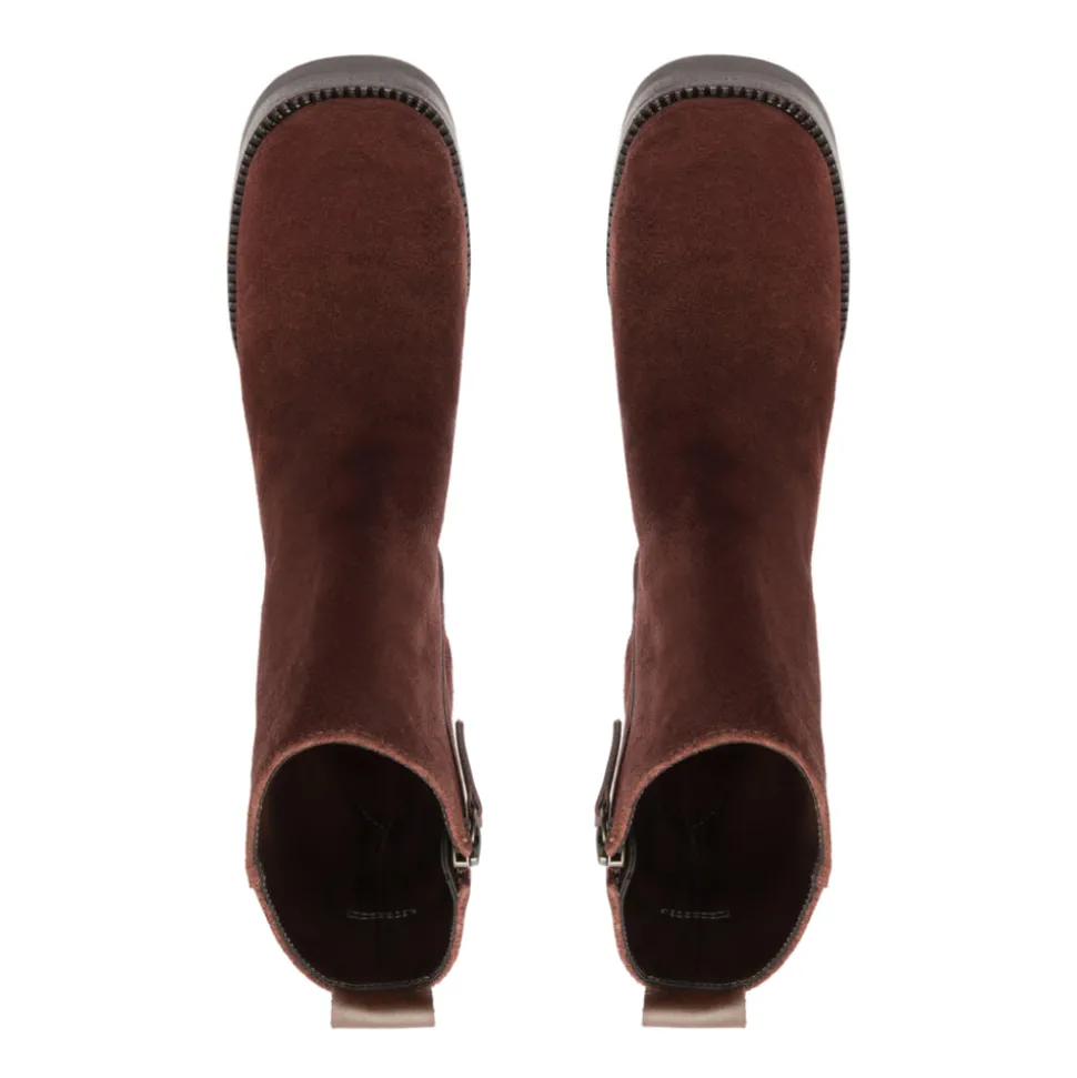 Suede upper. Man-made lining. Man-made sole. Heavy sole construction. Bootie silhouette.
