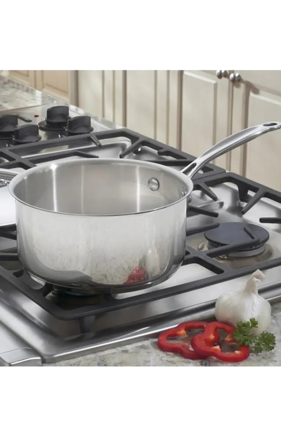 Crafted with a stainless steel body and aluminum-encapsulated base to ensure even heat distribution and eliminate hot spots. Interior measurement markings provide added convenience. Finished with a Cool Grip® riveted handle for comfortable handling and a tight-fitting stainless steel lid to seal in moisture and flavor. Induction-ready and compatible with all stovetops.