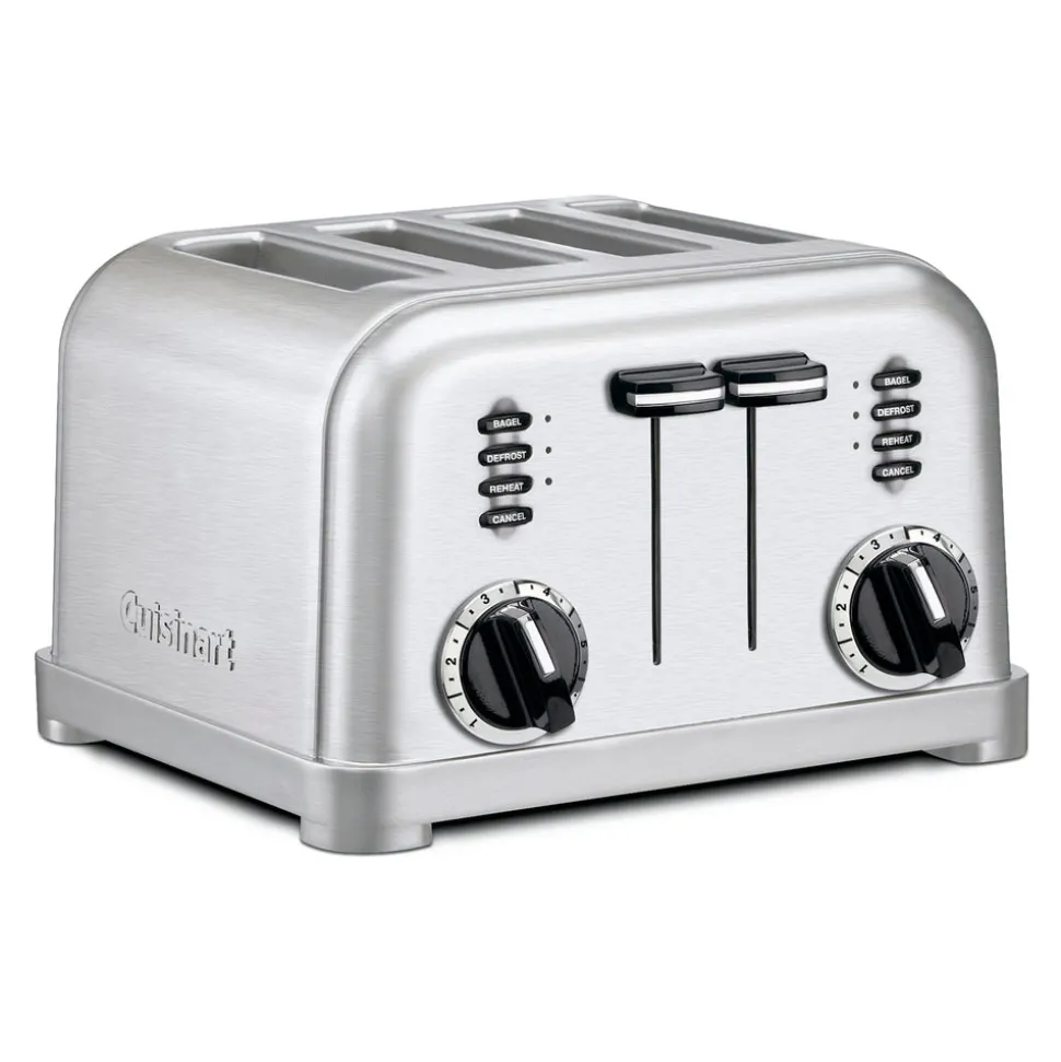 Founded in 1971 by Carl Sontheimer, Cuisinart revolutionized American home cooking by introducing the food processor, inspired by French culinary innovation. Now a leading name in premium kitchen appliances, the brand continues to champion creativity and excellence through thoughtfully designed tools embraced by chefs and home cooks alike. The 4-Slice Metal Classic Toaster combines retro-inspired design with modern functionality. Crafted in brushed stainless steel with polished chrome and black accents, it delivers consistent, customized toasting for breads, bagels, and pastries alike.