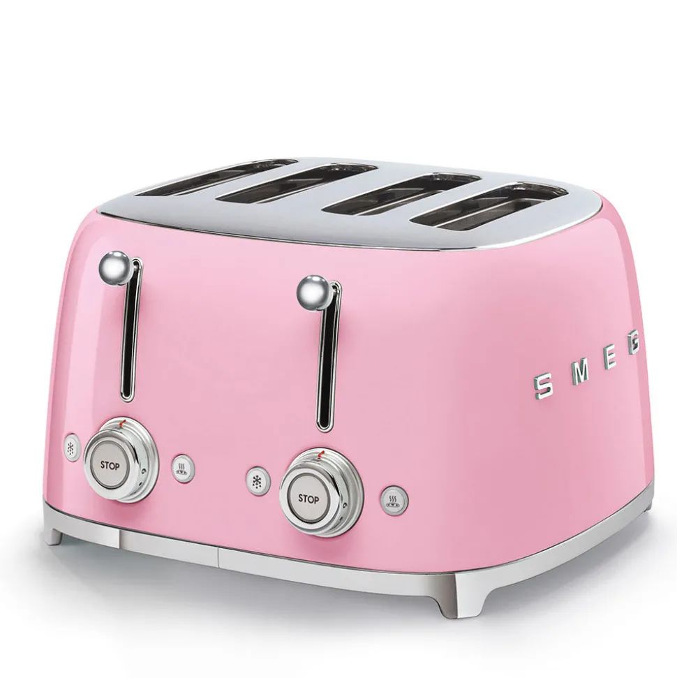 For over 70 years, SMEG kitchen appliances have gained renown for their distinctive design and exceptional functionality, earning their motto ‘Technology with style.’ The Northern Italian firm’s combination of retro aesthetics with cutting-edge technology—in everything from toasters to coffee machines to their signature fridge—sets kitchens apart the world over. Built to accommodate any space, the 4×4 Slot Toaster TSF03 is a compact wonder. While two independent toasting controllers, it is ultra versatile, and allows for diverse types of bread and preferences at once. Meanwhile, cleaning is made extra easy with the removable crumb tray and extra wide slots.