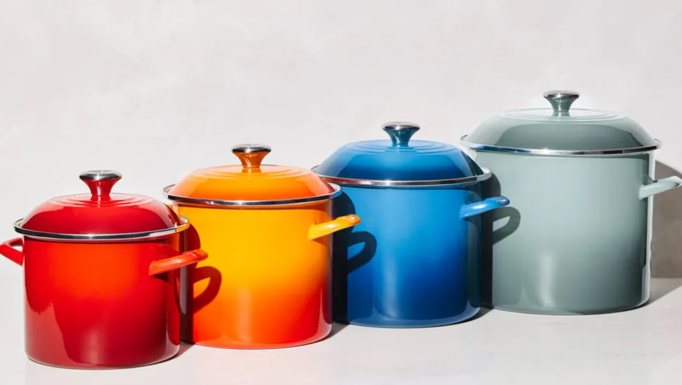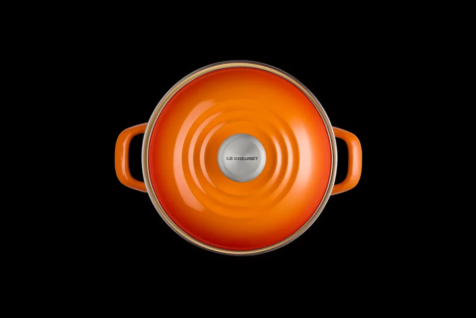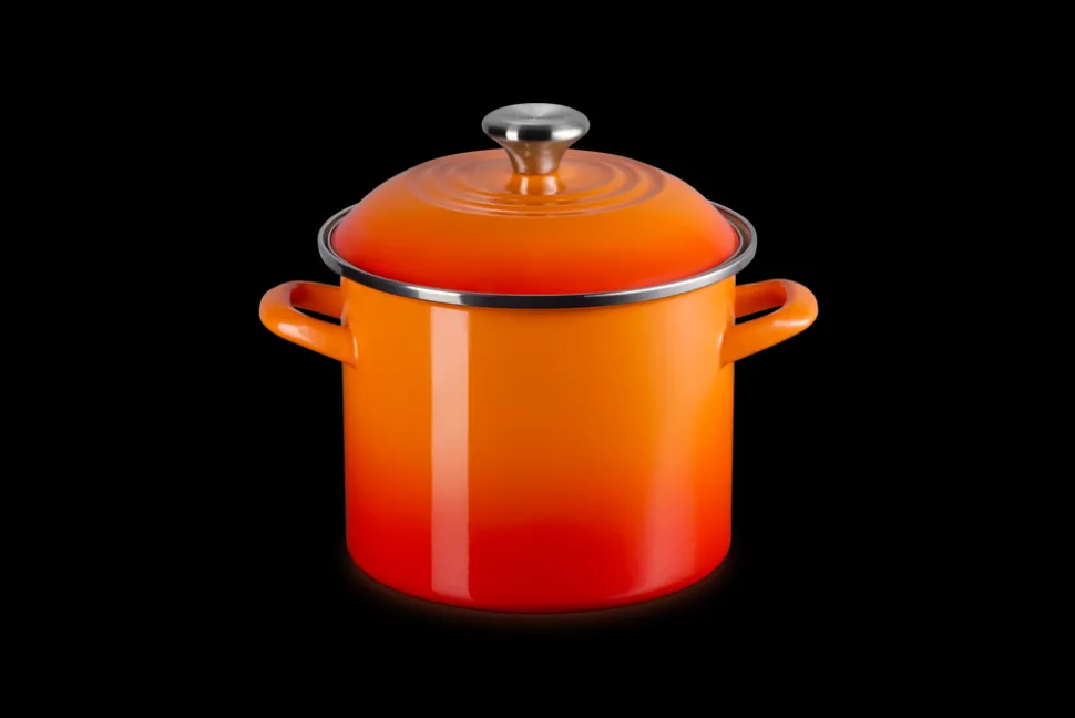 Recognized for its strength and durability, as well as its beauty and quality, Le Creuset produced the first enameled cast iron cookware nearly a century ago. A tradition of maintaining the finest culinary craftsmanship, combined with the latest innovations, means Le Creuset is known for blending classic form with real function and that it’s made for home cooks and professional chefs alike. The 6 qt. Stockpot in Flame features tall, straight sides and generous capacity, making it ideal for preparing soups, stocks, seafood boils, and pasta for a crowd. Crafted from fast-heating carbon steel and finished in a soft glaze, it brings utility and beauty to large-scale cooking.