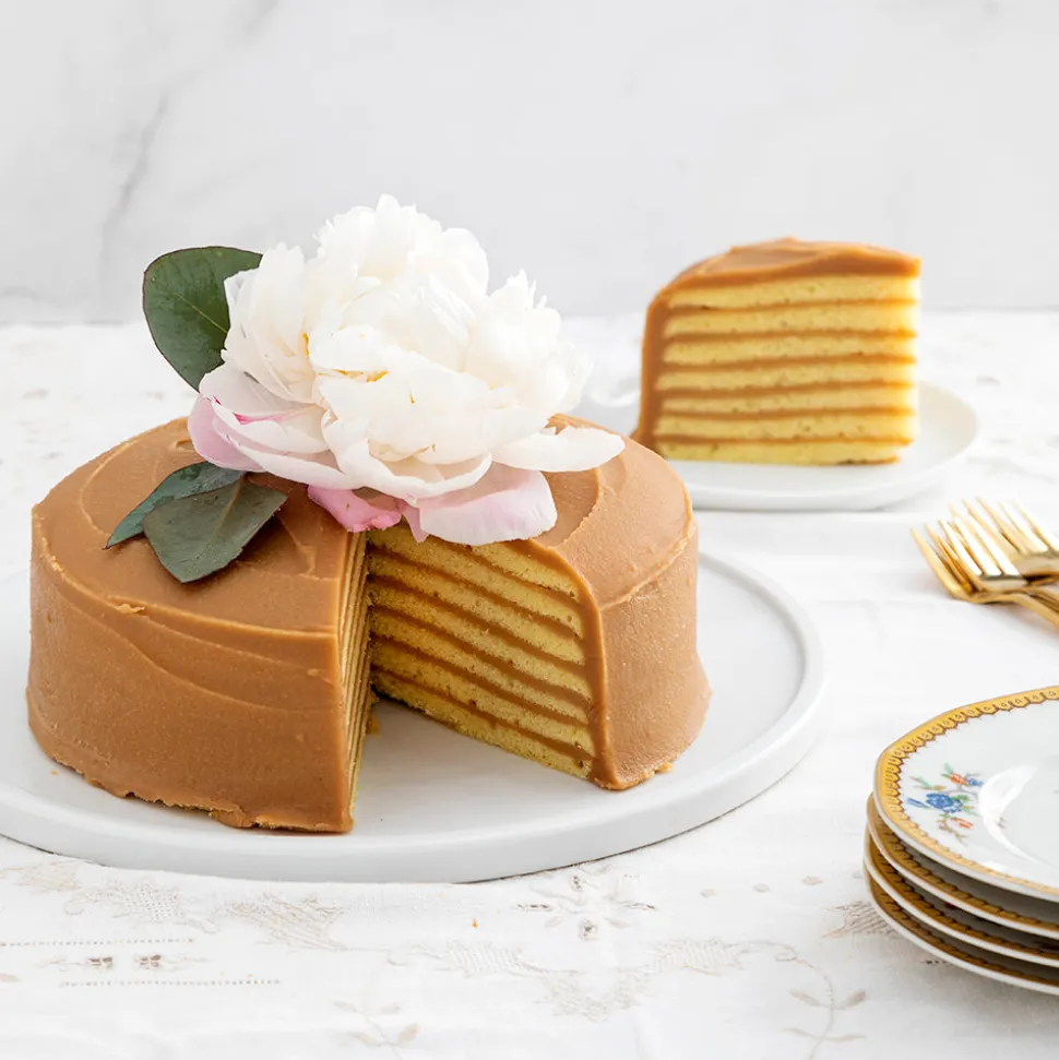Based in Spartanburg, South Carolina, Caroline’s Cakes continues a family tradition of confecting delectable desserts. The brand’s most popular layer cake, the 7-Layer Caramel Cake boasts moist yellow cake layers, filled with Caroline’s famous “melt-in-your-mouth” Caramel icing. A traditional Southern favorite, this cake may be frozen and refrozen for up to six months, giving you the luxury of elegant entertaining at your fingertips.