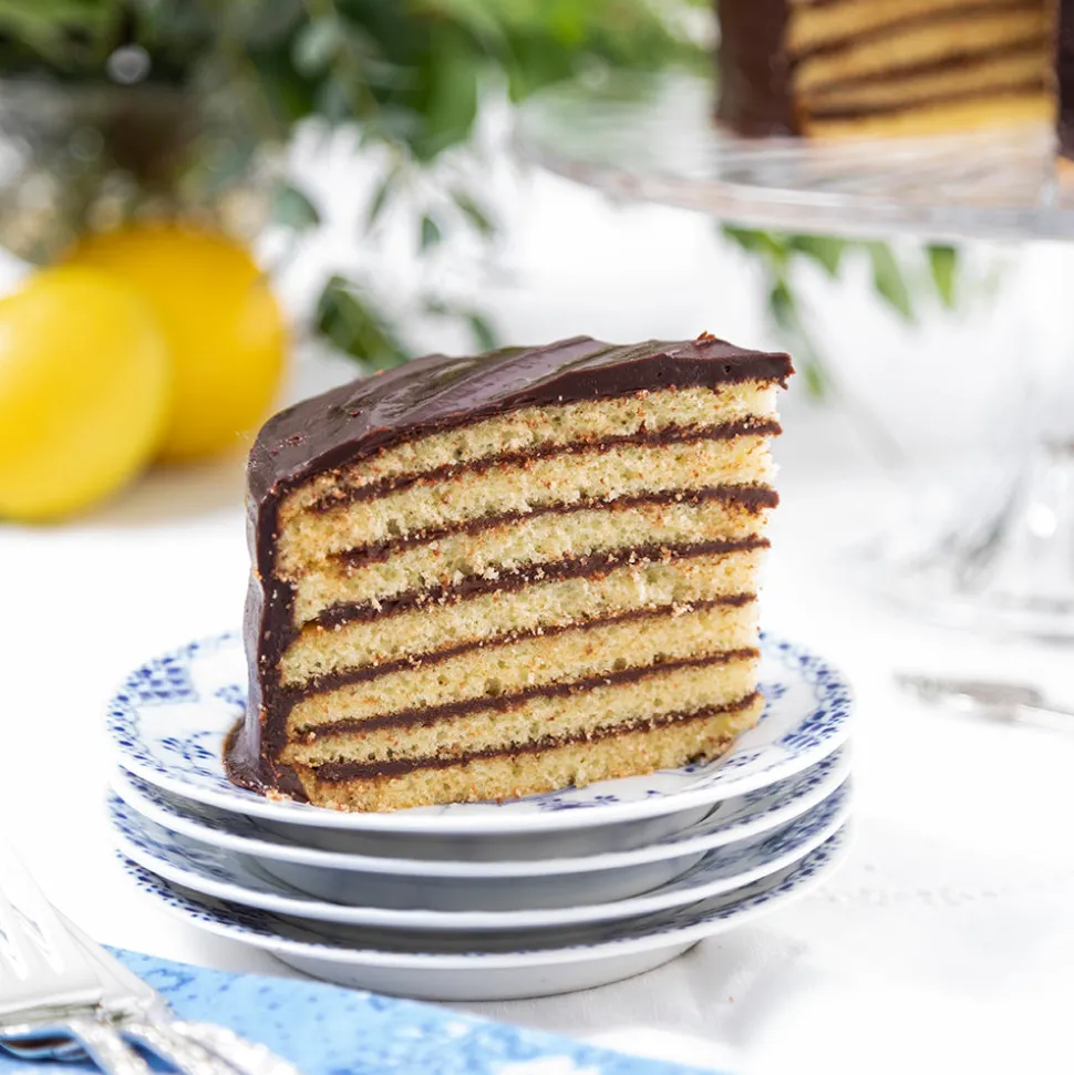 Based in Spartanburg, South Carolina, Caroline’s Cakes continues a family tradition of confecting delectable desserts. A chocolate lover’s dream, the 7-Layer Southern Chocolate Cake combines seven moist layers of yellow cake with creamy chocolate ganache. Finally, it is iced with Caroline’s traditional Southern fudge icing.