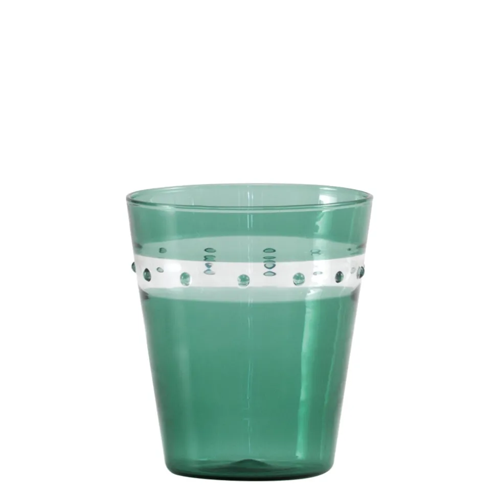 Zafferano lamps and glassware harness centuries of Murano craftsmanship, and hone it through the inimitable vision of Federico de Majo, giving these delicate, finely made pieces modern touches and endlessly stylish flair. The A Pallini Beverages, offered here as a set of four, extend the playful dotted motif of the collection into a taller, more generous silhouette. With their refined proportions and distinctive texture, they bring both charm and versatility to everyday dining and special gatherings alike.