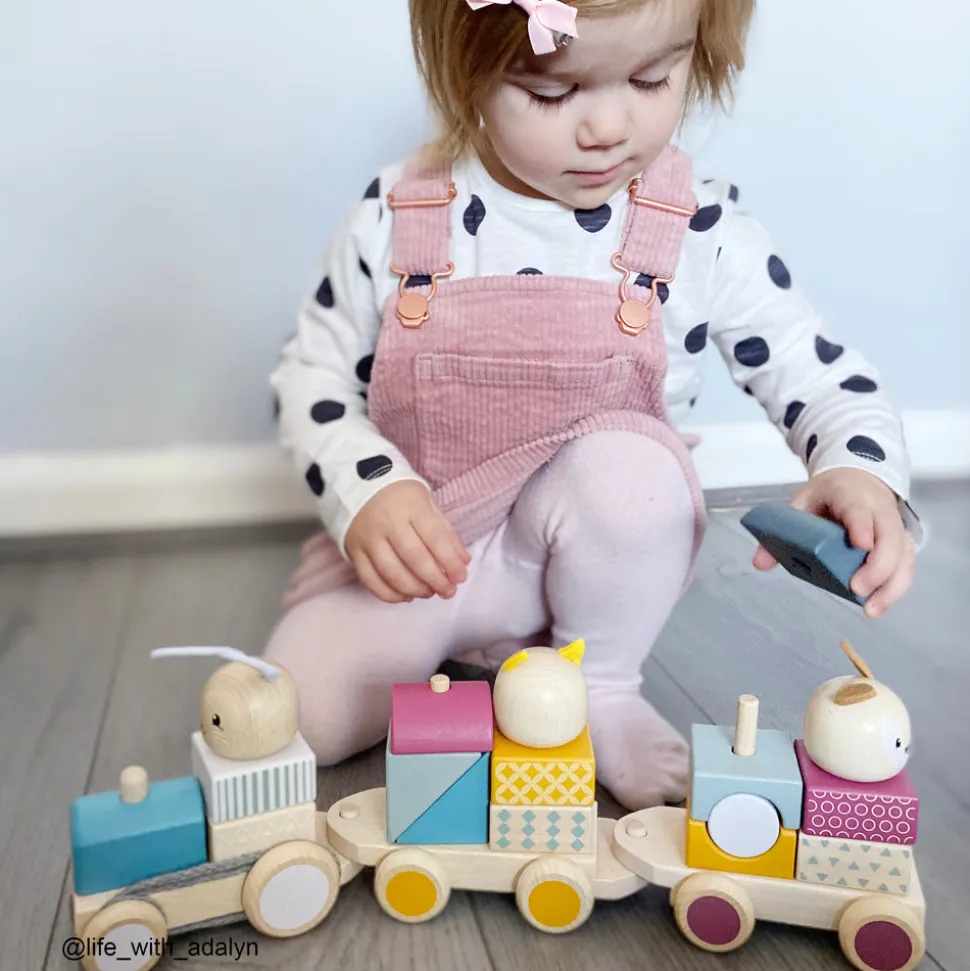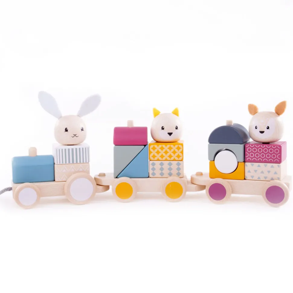 Quality has always been at the heart of Bigjigs Toys, a family business that began in 1985 with puzzles crafted from a garden shed in Kent, England. Today the company boasts a wide range of toys and games that are not only safe, and made to last, but complement childhood development through fun, exploration and learning. The beautiful and bright Activity Pull Along Train is packed full of exciting activities to keep your little ones entertained for hours. This vibrant pull along toy train features one train engine, two carriages, and three animal passengers that can be pulled across both hard and soft surfaces. And it doubles up as a stacking toy and a fun puzzle; the woodland animals and blocks can be taken apart and put together again in a multitude of different ways.
