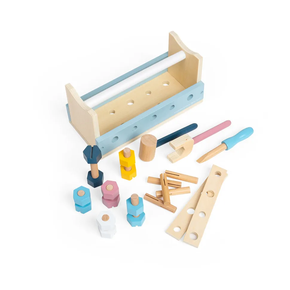 ncludes a wooden spanner, screwdriver, hammer, and nuts and bolts. Made of 100% FSC certified wood. Requires adult assembly. 12 months +.