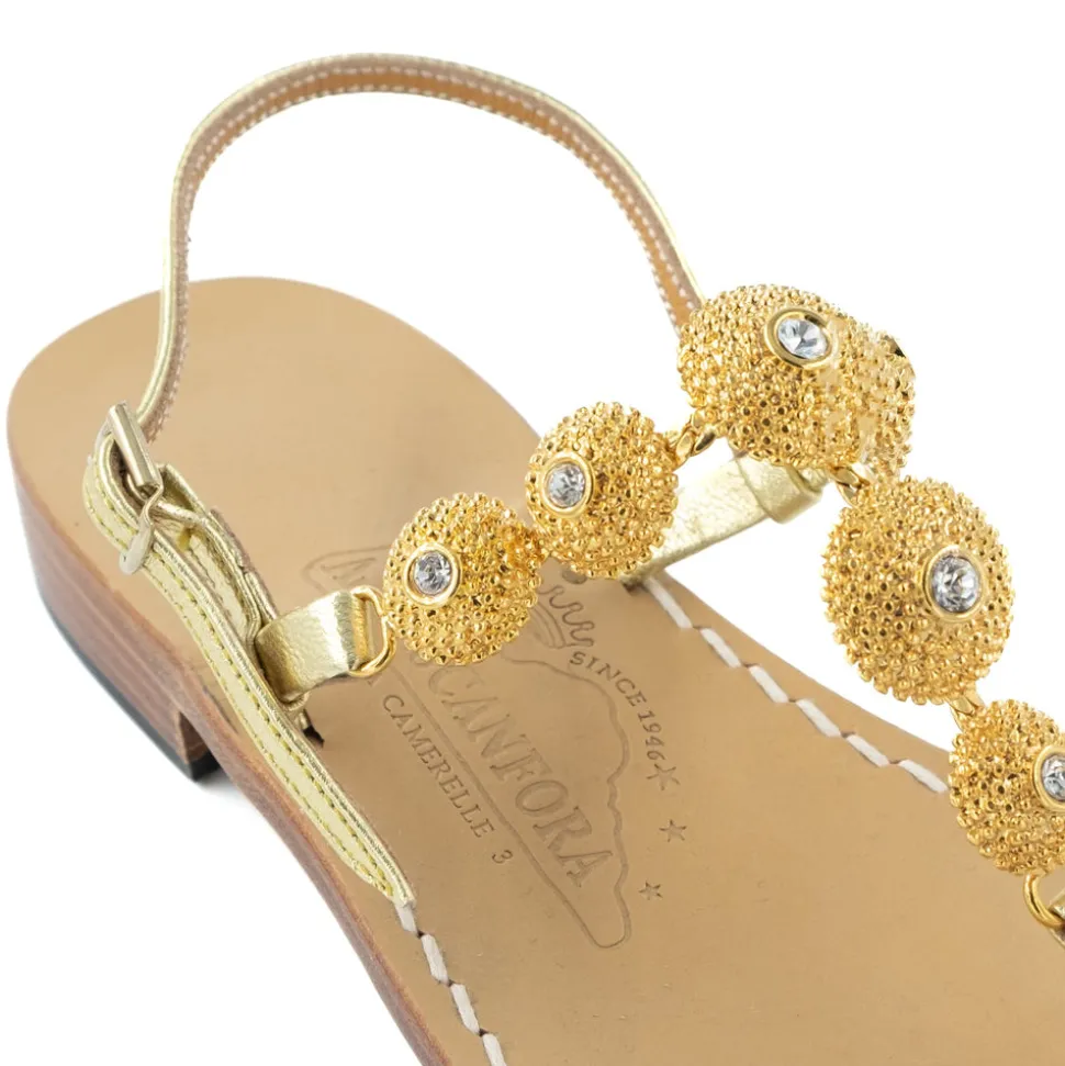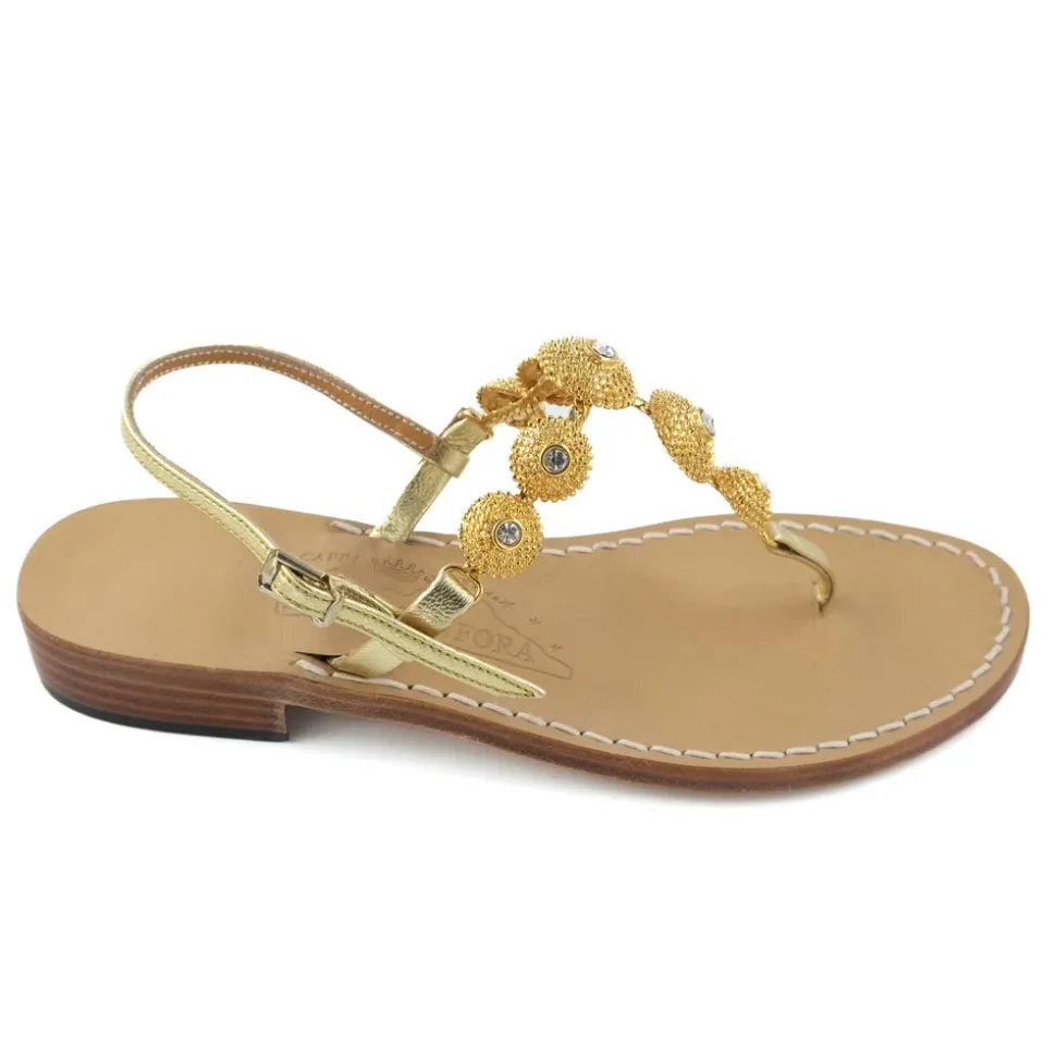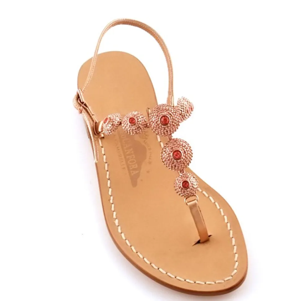 Inspired by the timeless elegance and iconic style of Jackie Kennedy, this artisanal brand channels the effortless glamour of Capri through its handmade sandals. Each pair is a celebration of heritage and refinement, blending old-world craftsmanship with enduring sophistication. Designed to be worn season after season, these pieces invite a life of beauty, grace, and ease. Striking a balance between simplicity and sparkle, the Adele Leather Thong Sandal blends classic minimalism with a refined touch of embellishment. With its elegant mix of color and rhinestones, this versatile style offers just the right amount of radiance.
