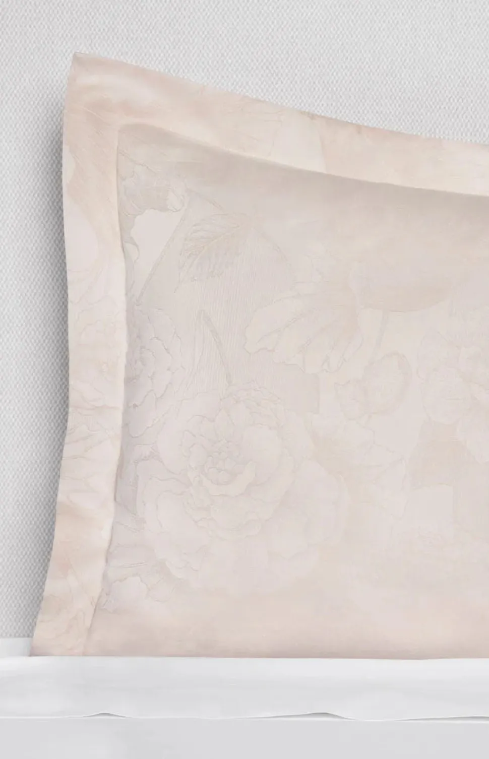Renowned for their signature Italian craftsmanship, Sferra linens are famous for their quality, and lauded for their elegance, the world over. The Adrina Sham in Cameo reveals a delicate bloom of florals in soft blush and cameo, woven in lustrous Italian sateen jacquard. Rich in texture and finely detailed, its softly etched lines embody feminine elegance and refined artistry.