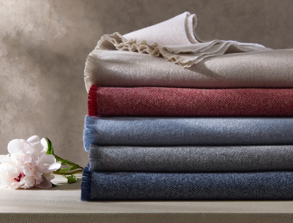 For nearly 100 years and three generations, Matouk has handcrafted luxury linens from the world’s finest materials. Their dedicated artisans in Fall River, Massachusetts are committed to creating the highest quality, most-loved bed, bath, and table linens for your home.  Looking just as fine draped on a sofa as it does folded at the end of your bed, the Agnes Throw can easily be worn around the house on a chilly evening, or while you greet the day with that first-morning coffee. Made from a blend of cashmere and wool, this throw offers the ideal balance of softness, weight, and warmth.