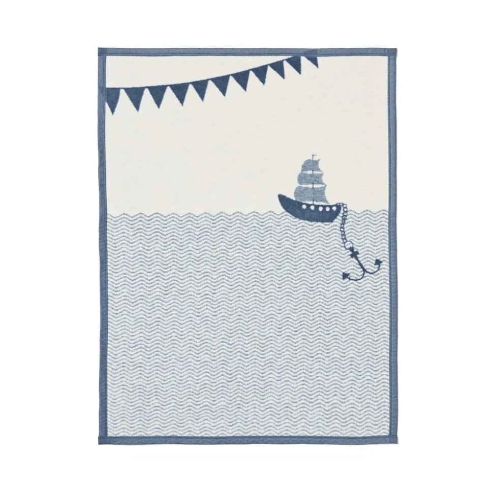 From a mother-daughter duo in Chappaquiddick, ChappyWrap makes soft, calming, easy to care for blankets.Their unique jacquard woven blankets are made with a long-lasting blend of plush, natural-cotton and high-performance fibers. Chappywrap pieces carry all the comfort and warmth of those blankets we remember from our youth. Featuring a delightful sailing scene from yore, the Ahoy Matey Mini Blanket will be your little one’s favorite, and yours (Needs a wash? Just toss it in the machine).