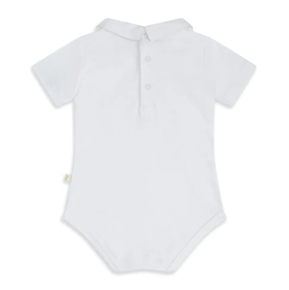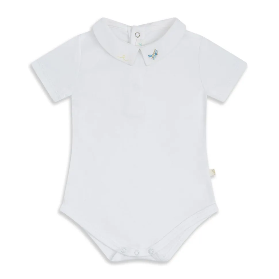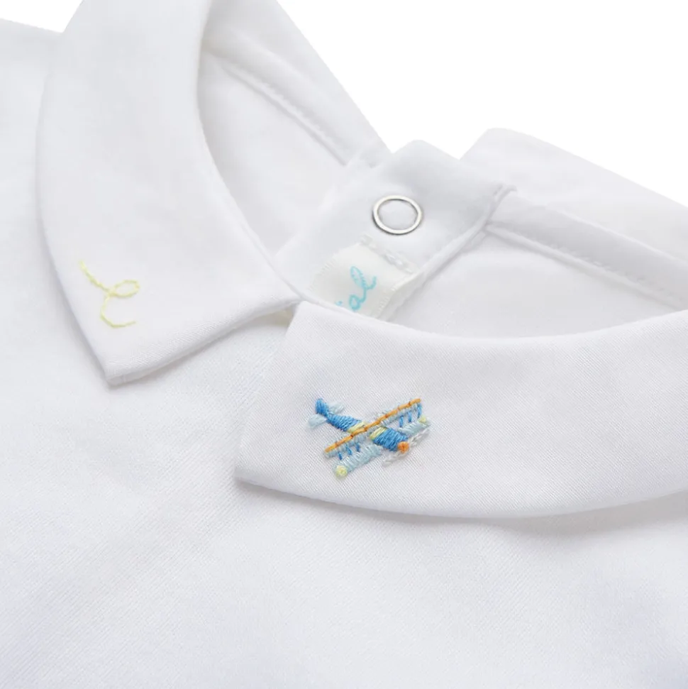 Princess Marie-Chantal of Greece’s eponymous label is known internationally for its unmatched style and the quality of materials—like their organic, hand-picked Pima cotton—which lies at the heart of their baby essentials and contemporary children’s clothing. The Airplane Embroidered Collar Onesie is hand-embroidered with a propellor plane on its handsome little collar. This is ideal for layering under rompers, shorts, and sweaters, or great just on its own.