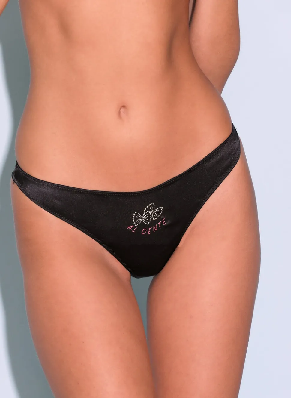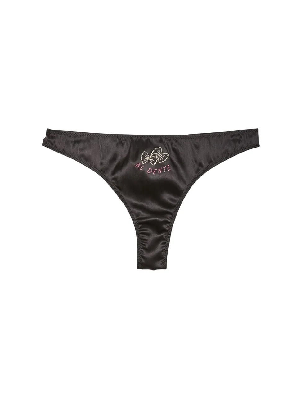 Inspired by Charles Baudelaire’s masterful collection of poetry entitled “Les Fleurs du Mal,” Jennifer Zuccarini founded Fleur du Mal with the belief that wearing beautiful lingerie should be an everyday affair. Tastefully provocative, the luxury brand has amassed a cult following of devotees who adore the sultry and empowering pieces. Buon appetito. The Al Dente Luxe Thong, cut from luxe silk charmeuse with hand-drawn chain stitch embroidery. With playful keyhole and bow detail at back, flaunt on its own or pair with the Luxe Triangle Bra.