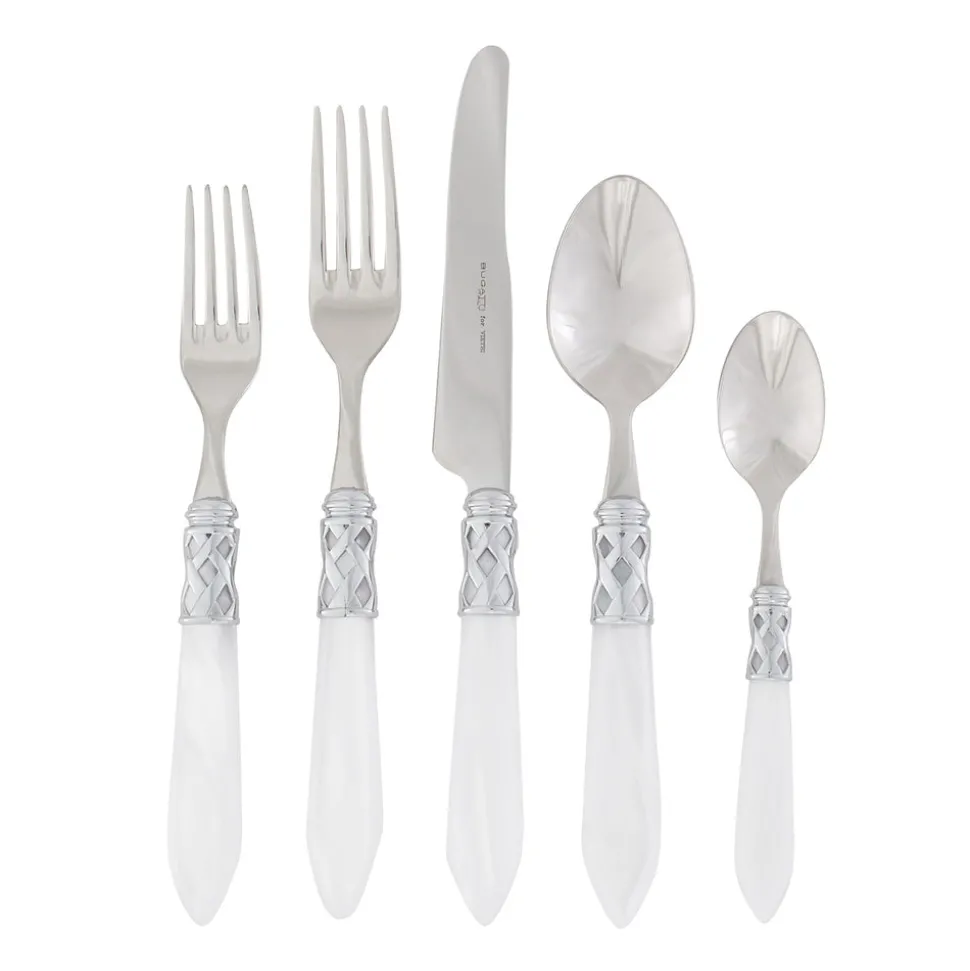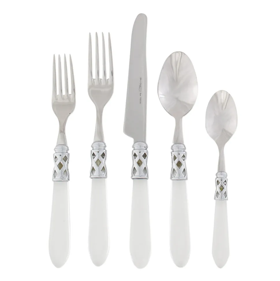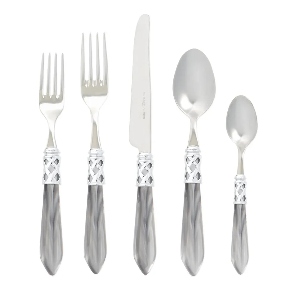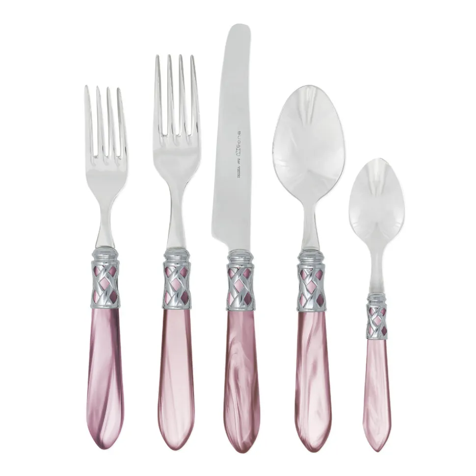 Inspired by Italian lifestyle, history, and culture, VIETRI uses the highest-quality clays from the soil of Italy’s countryside to produce beautiful, everyday items for your home. Hand-painted details, quality glazes, and fine craftsmanship help you savor the moments spent at your table and the company of those who join it. Featuring pearlized handles wrapped with intricate lattice metalwork, the Aladdin Brilliant Five-Piece Place Setting is at once versatile and elegant, elevating any dinner service.