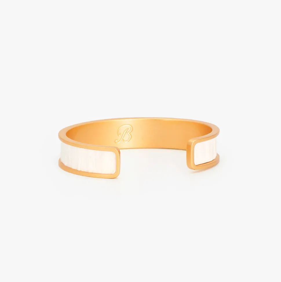 Brackish began with one feather bow tie designed by Ben Ross and gifted to his groomsman, Jeff Plotner. Since its inception, the brand has blossomed into full line of men’s and women’s accessories designed and handcrafted in Charleston, South Carolina with each piece focused on honoring the beauty found in nature. The Alba Thin Cuff is crafted by placing each feather perpendicular to the hardware to create a monochromatic ridged pattern. Highlighting the natural texture of the white rooster feathers, this piece pairs well with any occasion.