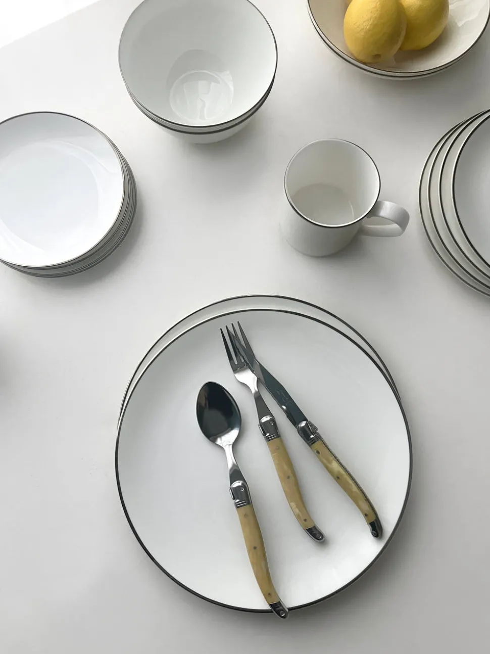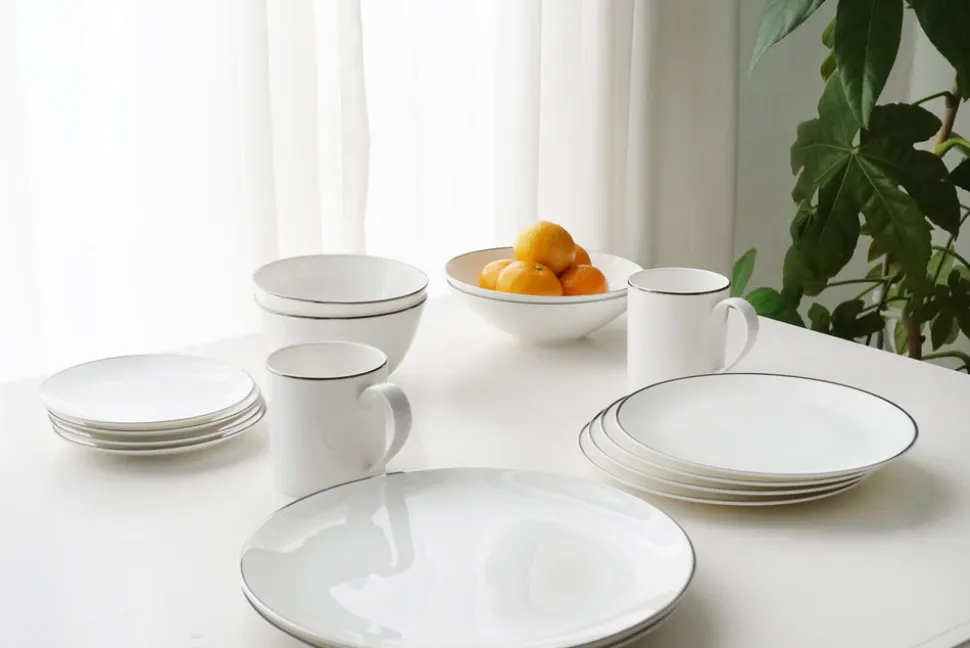 Fine Bone China with a hand-painted microwave safe Platinum rim.