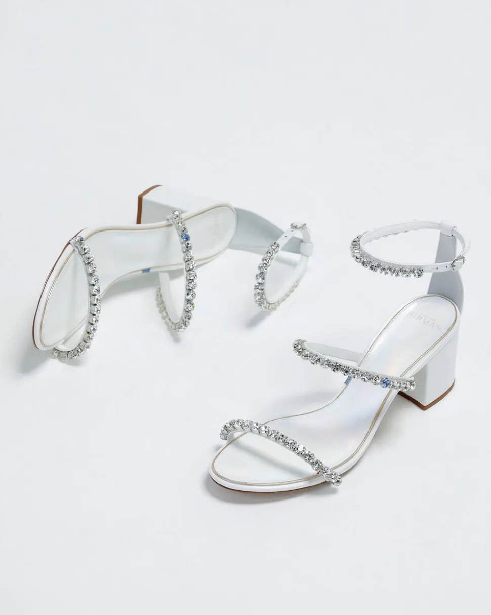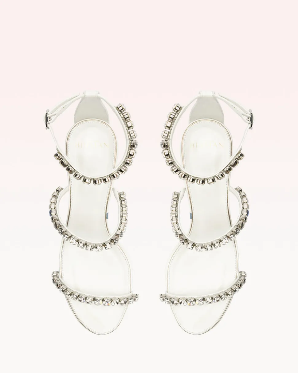 Founded in 2008, Alexandre Birman infuses each of his fine footwear collections with the spirit, sensuality and sophistication of his Brazilian heritage. Beginning with thoughtful drawings, exceptional craftsmanship is the brand’s cornerstone, employing fine artisans, superior materials, and thoughtful design to create timeless, luxurious shoes, style after style. Add some shine to your one-of-a-kind look with Alexa Crystals Bridal 60 in White, boasting three rows of crystals to capture all the lights. Crafted in nappa leather and an elegant block heel, these are equal parts glamour and polish.