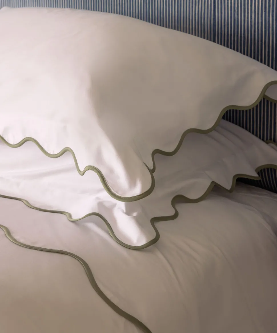 A belief in buying less, and better, leads Rebecca Udall to the finest materials and most capable makers for her luxe linens and homewares. Focusing on provenance, longevity and timelessness, these are investment pieces that can elevate any table, room, or home. The Alexandra Wavy Scalloped Bed Linen features a hand-applied bias border and a beautiful, particularly special scalloping technique.