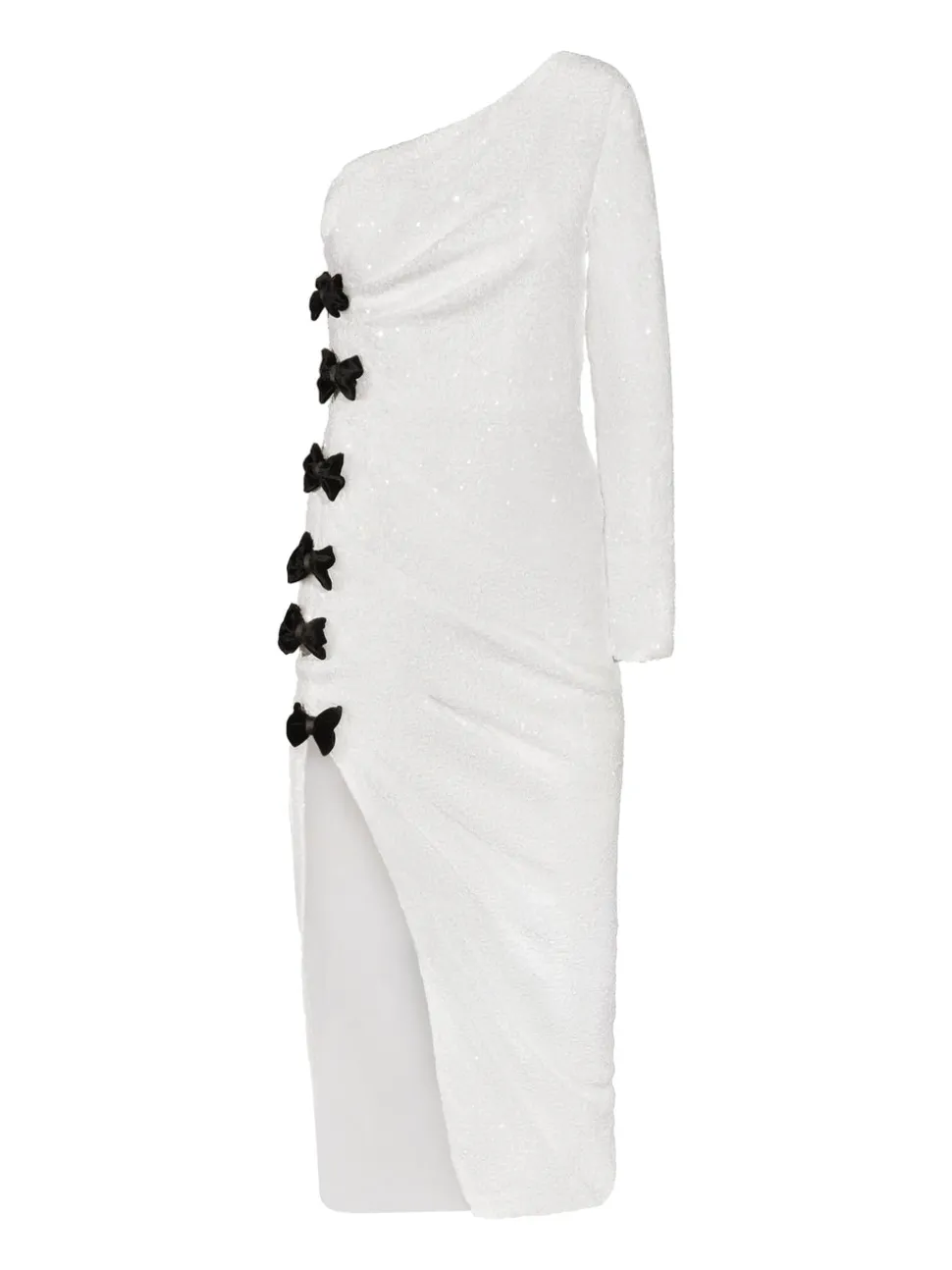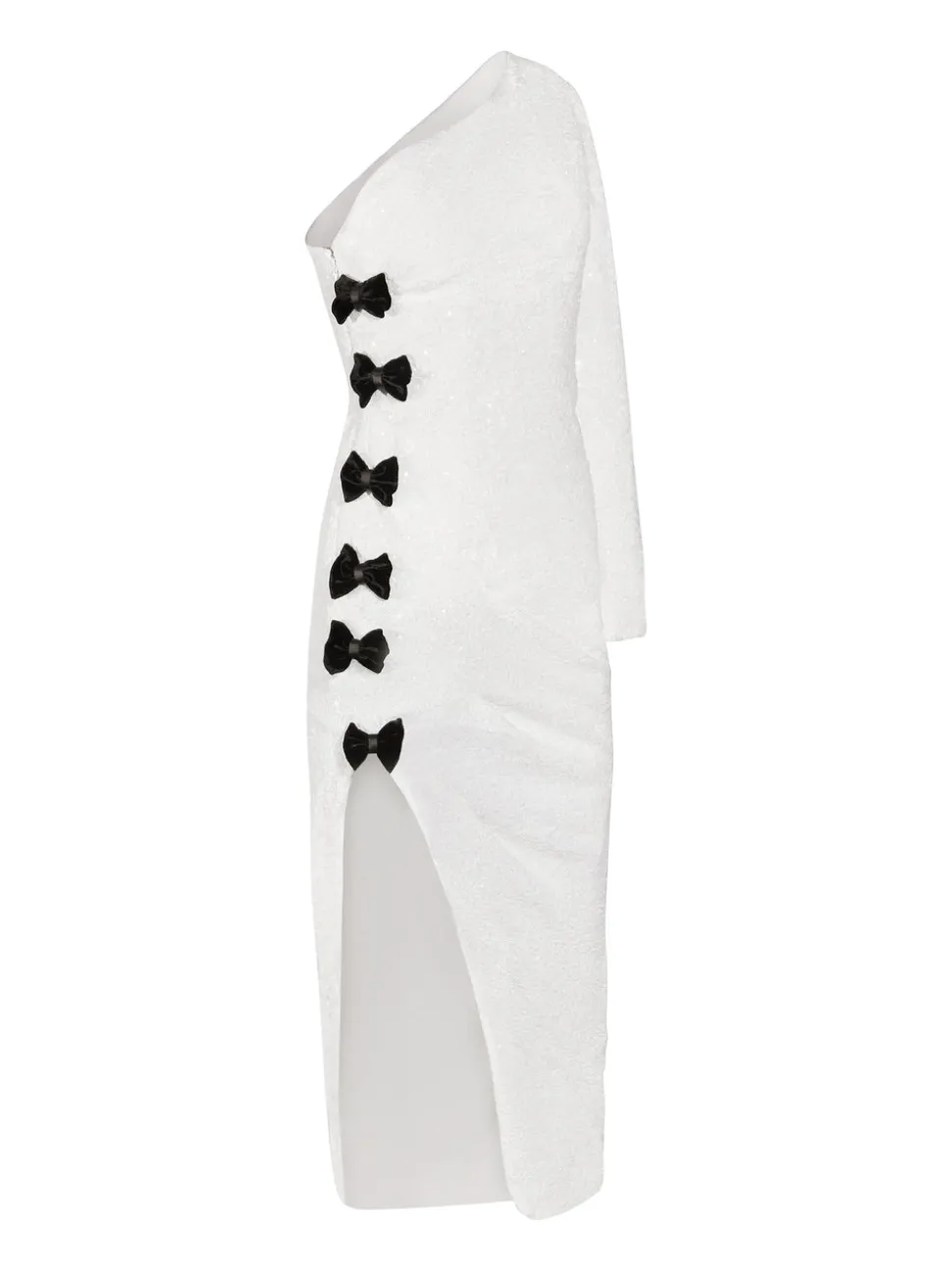 Born in India and raised in New York, where she eventually worked in finance, Natasha Das’ diverse background is at the essence of Danarys New York, a luxury womenswear label that asks its wearer to embrace their strength and fearlessness of their femininity. The Alexandria Dress is sequined and trimmed in bows for a flirty twist. The internal corset flatters every figure—perfect for a showstopping party look that will turn heads for all the right reasons.