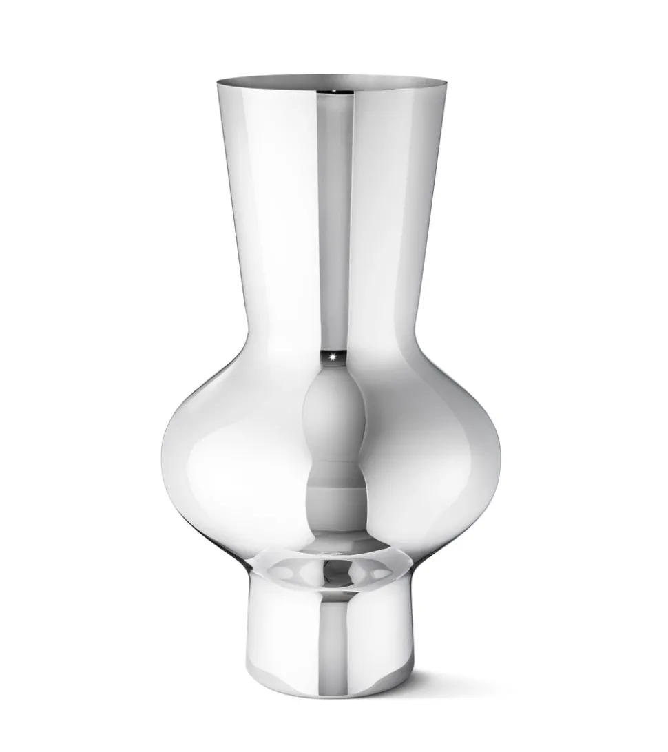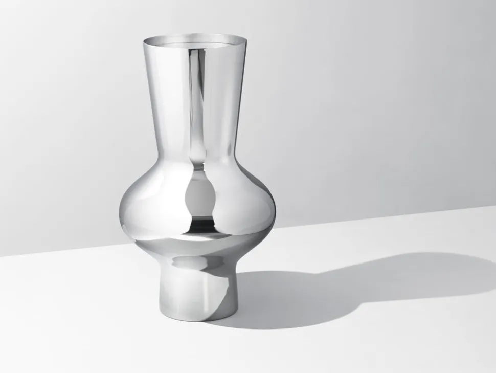 For over a century, Georg Jensen has developed jewelry, silverware, and home decor with purposeful, timeless, and functional beauty in mind. Rooted in Scandinavia, and inspired by the lines of Art Nouveau, the brand innovates, sustainable, unmistakable design with a distinctive vigor and unmatched quality. Designer Alfredo Häberli worked with Georg Jensen to create a range of kitchen and dining room products that import not only functionality but light-hearted personality. Bold and striking, the tall and decorative Alfredo Vase is a statement piece that nevertheless is minimal enough to allow the flower arrangement to take centre stage.