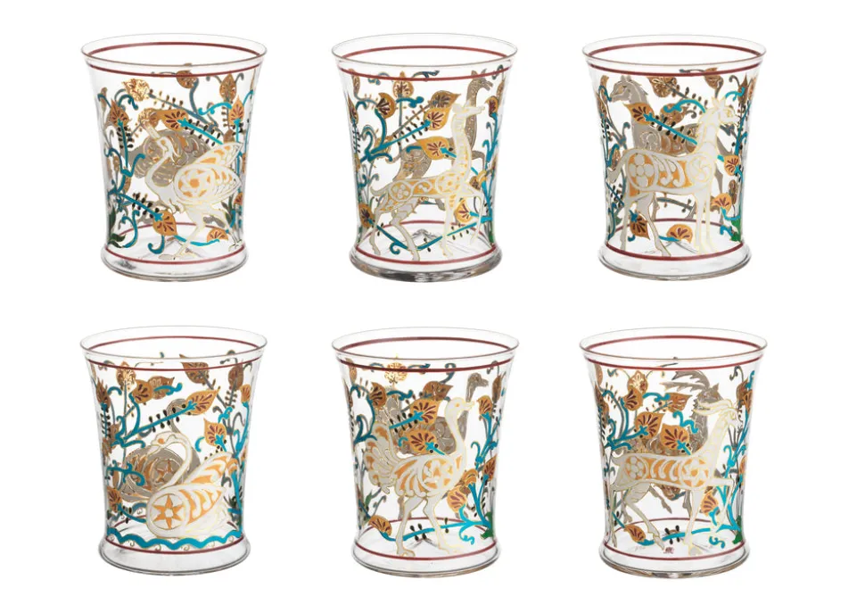 Founded in Vienna in 1823, J. & L. Lobmeyr has spent two centuries mastering the art of light and glass. Still crafted by hand in the brand’s historic workshops, Lobmeyr’s crystal and chandeliers reflect a timeless balance of tradition and innovation—shaped in collaboration with visionary designers past and present. The Alhambra Arabian Tumbler with Swans features a delicate enamel illustration of a swan, inspired by the stylized animal motifs of the Alhambra Palace in Granada. Charming and lyrical, it captures the charm of Moorish ornament in a refined silhouette of hand-blown crystal.