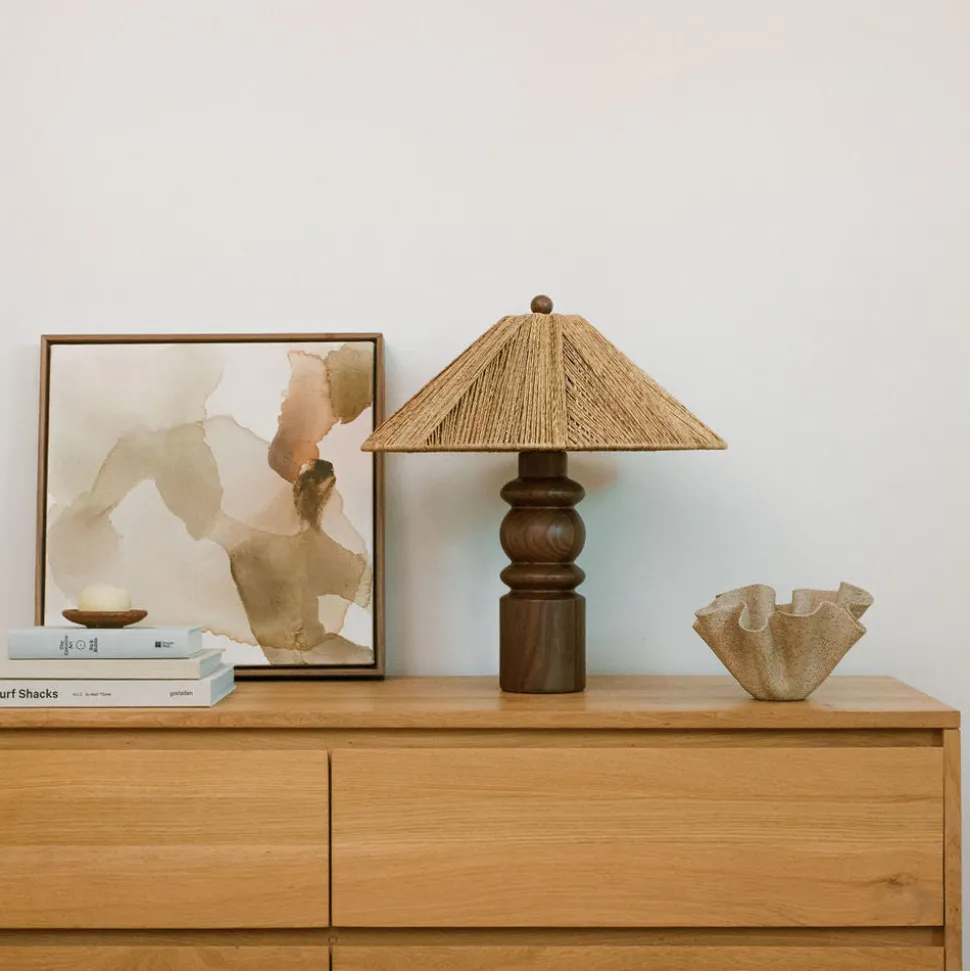 At once beautiful and timeless, Woven designs mindfully designed pieces for your home and beyond. Woven invites you to create spaces that are layered and natural—an expression of you. The Alhambra Table Lamp is designed and crafted to look like an heirloom. The eye-catching lamp base features hand-turned Walnut wood, with a rich Walnut finish. A textured jute shade adds dimension and an organic quality to effortlessly elevate any space.