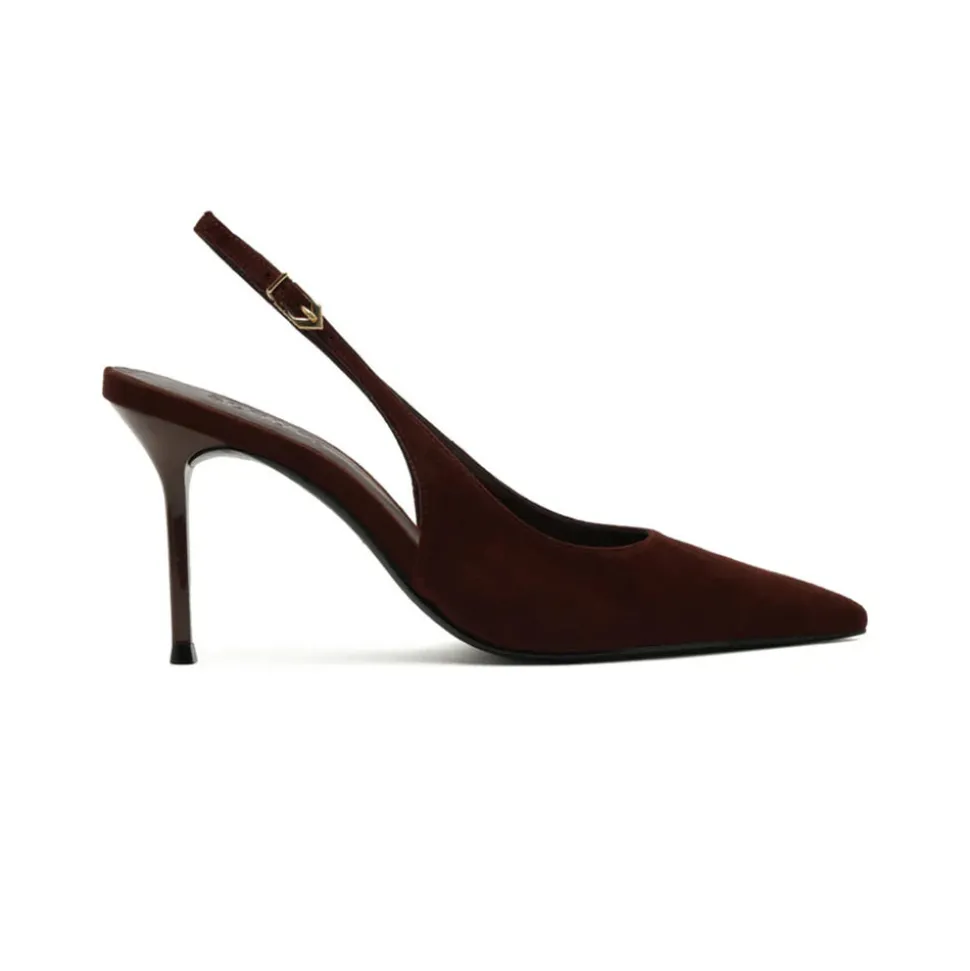 Founded in 1995 by Alexandre Birman, Schutz redefines attainable luxury with its stylish footwear. With each new release, the brand delivers of-the-moment collections, defined by confident, bold, designs around which entire outfits can be built. The Alicia Sling Suede Pump in Root Brown brings refined seduction into focus. With a pointed toe, sculptural heel, and sleek slingback strap, this sharply tailored silhouette is designed to command attention—no hesitation, just bold, unapologetic confidence.