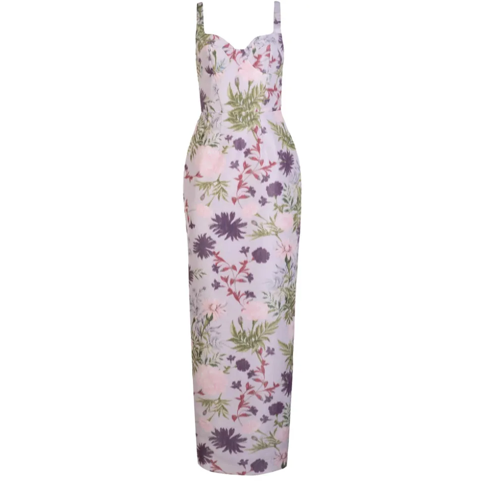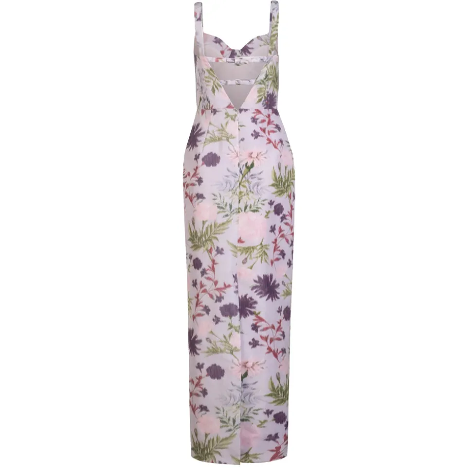 A graduate of the Savannah College of Design, award-winning Alexandra Pijut’s namesake line arrives from her studio in New York, offering luxe ready-to-wear pieces that distinguish themselves between femininity and practicality. The Allie Dress in Orchid Posy Taffeta showcases a romantic, column silhouette with bow-tied straps and a structured bodice that sculpts and supports. Rendered in lavender, green, and pink chine florals, this taffeta design radiates softness with a sculptural edge.