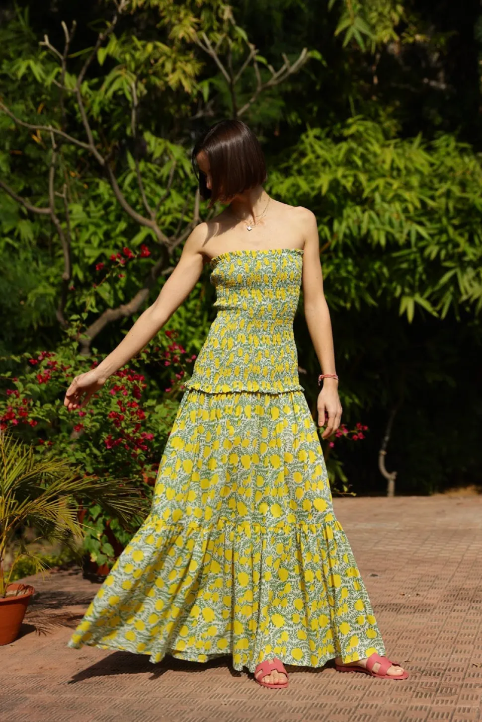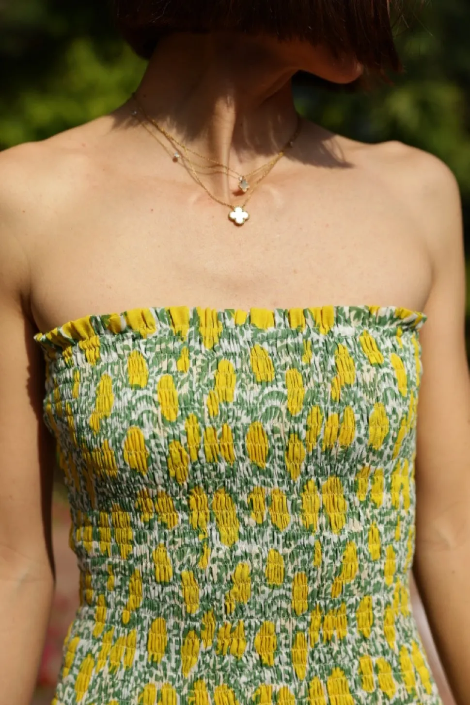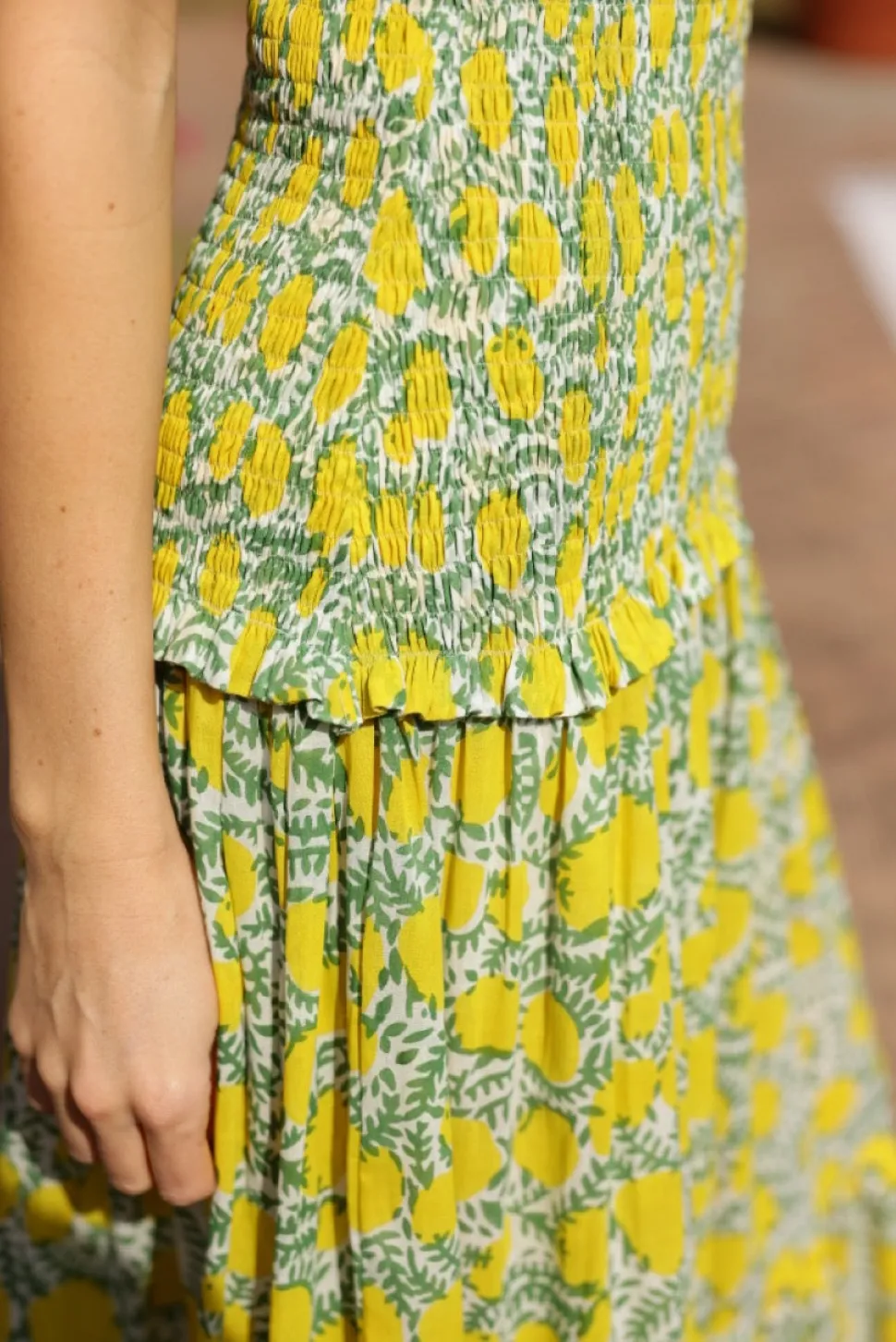 Introducing Maison Marigold, a new luxurious small-batch women’s resortwear brand inspired the wanderlust of travel. Our collections effortlessly transition from beachside lounging to an elegant evening on the town. The simplicity of design and classic silhouettes are the foundations for each and every style. Hand-printed linen and cotton make for comfortable and effortless pieces that are both feminine and flattering. The Amalfi Mermaid Dress is a refined silhouette and figure flattering shape that makes for a flirty and feminine look. The maxi dress features thoughtful ruffle details along the top and waist, supportive smocking from the top through to the hips. This figure flattering dress will undoubtedly become a summer favorite.