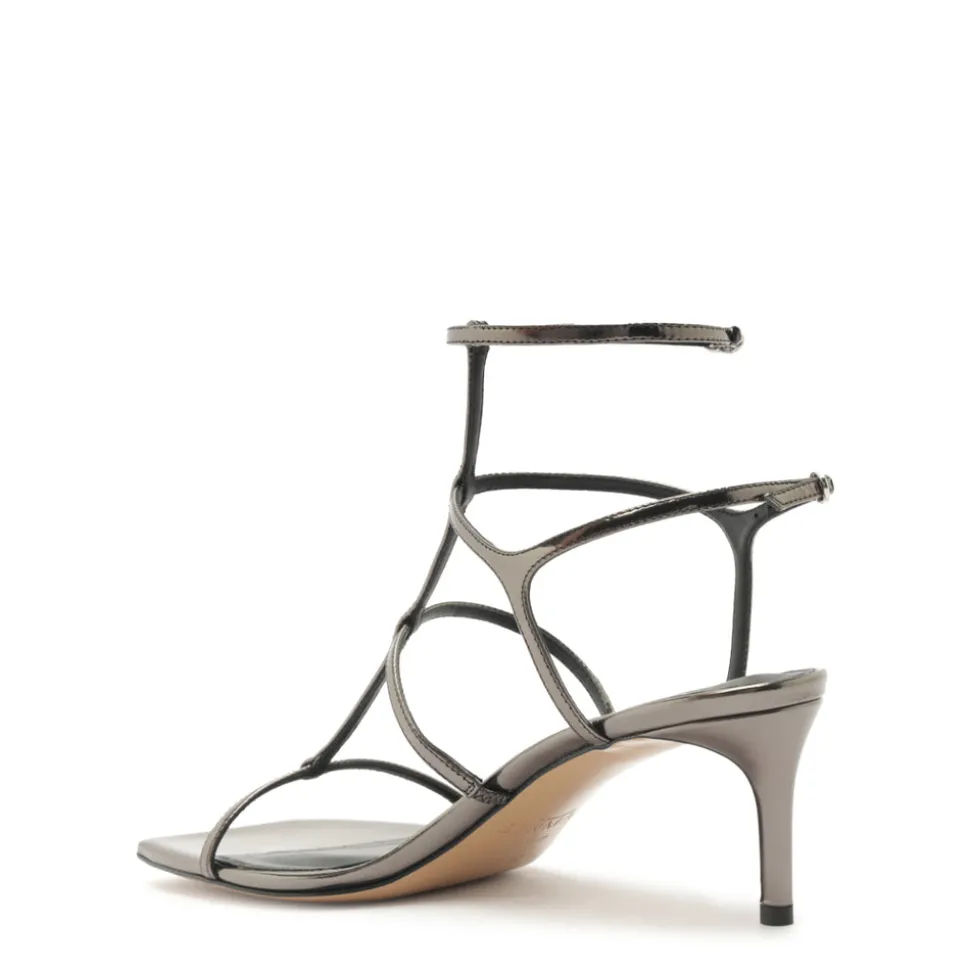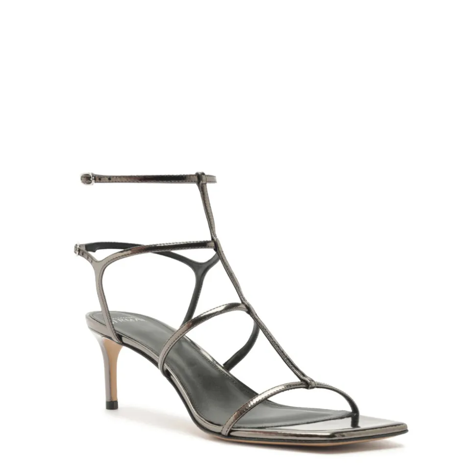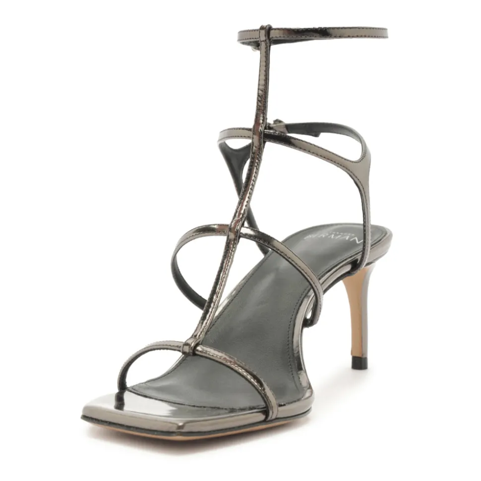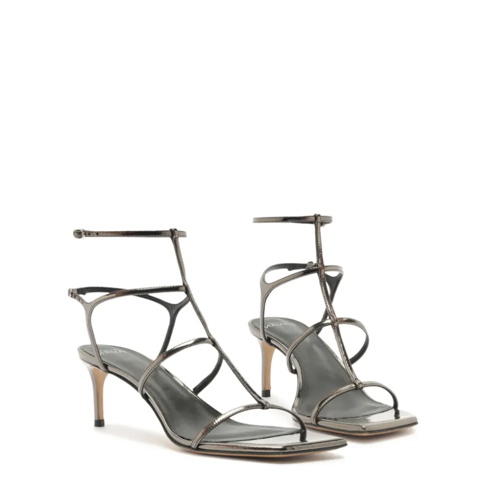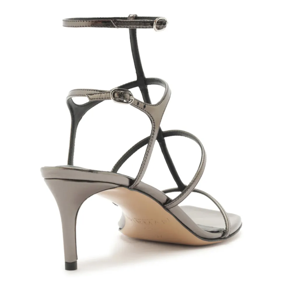 Founded in 2008, Alexandre Birman infuses each of his fine footwear collections with the spirit, sensuality and sophistication of his Brazilian heritage. Beginning with thoughtful drawings, exceptional craftsmanship is the brand’s cornerstone, employing fine artisans, superior materials, and thoughtful design to create timeless, luxurious shoes, style after style. The Amanda 60 in Grafite exudes understated glamour with its slender straps and polished specchio leather finish. Designed with a Salome-style central strap and barely-there silhouette, this sandal delivers refined sophistication in a versatile, barely-there form.