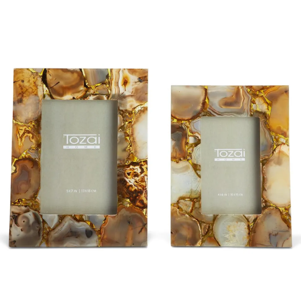 Started in a couple’s Westchester home in 1969, Two’s Company is a single destination for a wide range of stylish contemporary gifts, homewares, and accessories. From chinoiserie dish collections to accents for the sofa, the brand’s offerings are once sophisticated and accessible, making it an ideal gifting source for weddings, babies, new homes, birthdays, and more. The Amber Agate Photo Frame Includes, Set of 2 is crafted from natural agates, so that each piece will have variances in color and pattern. An elegant and sophisticated home for your most treasured moments and memories.