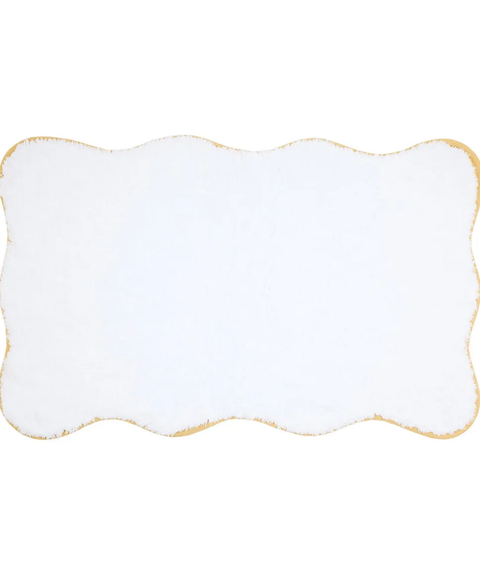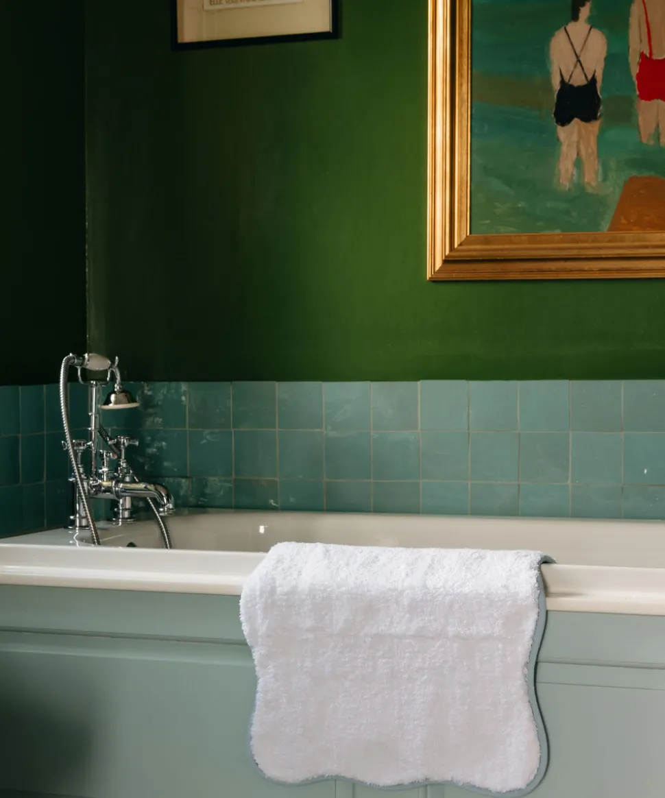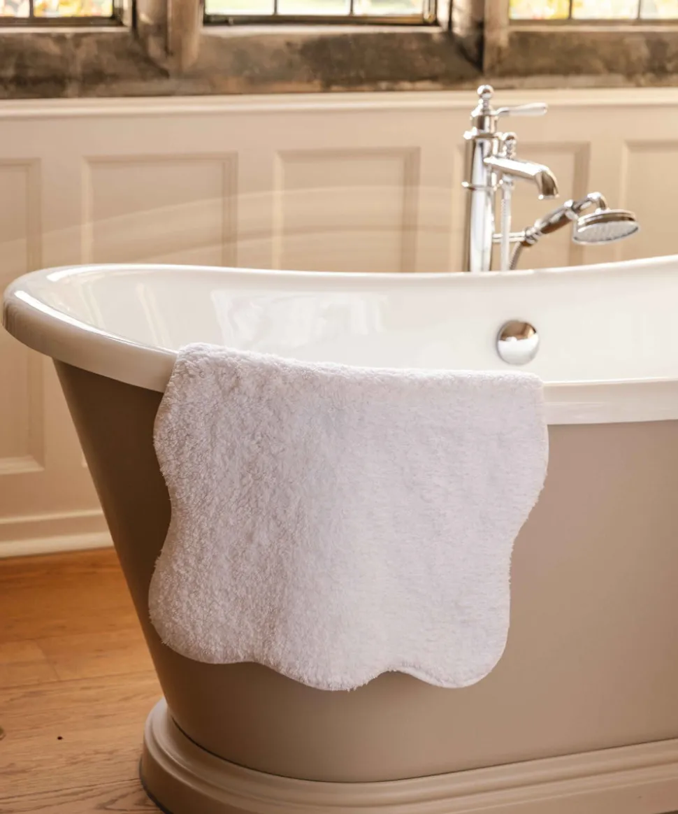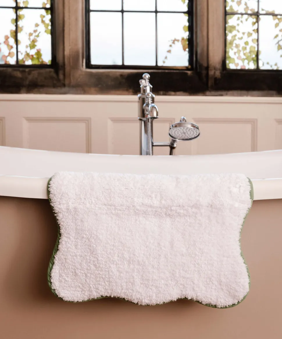 A belief in buying less, and better, leads Rebecca Udall to the finest materials and most capable makers for her luxe linens and homewares. Focusing on provenance, longevity and timelessness, these are investment pieces that can elevate any table, room, or home. As charming as they are luxurious, the Amelia Scalloped Bath in Asparagus is made with pure cotton. This generously sized bath mat has a super plush, deep pile for maximum absorption and comfort. Designed by Rebecca and crafted in Portugal by a heritage bath mat manufacturer, they feature a scalloped piped border and textured cotton backing for a sustainable, non-slip grip. Available in a range of colors to complement your decor.