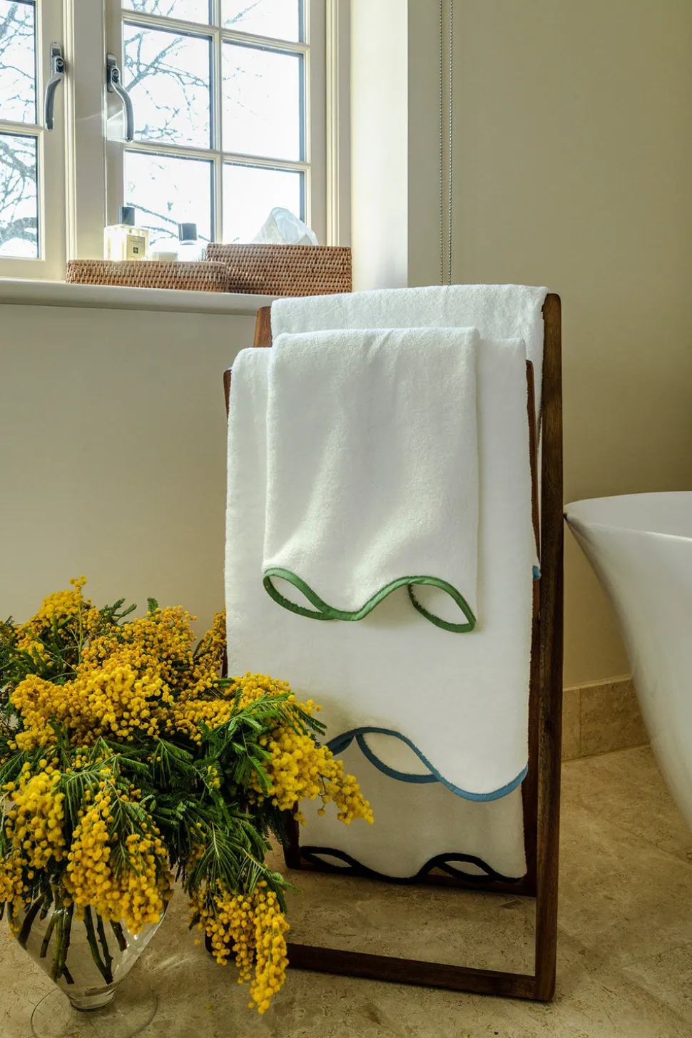 A belief in buying less, and better, leads Rebecca Udall to the finest materials and most capable makers for her luxe linens and homewares. Focusing on provenance, longevity, and timelessness, these are investment pieces that can elevate any table, room, or home. Crafted in combed cotton by heritage Portuguese weavers, the Amelia Scalloped Bath Towels, White/Asparagus are supremely soft and absorbent, not to mention stylish as can be, with their whimsically scalloped trim.