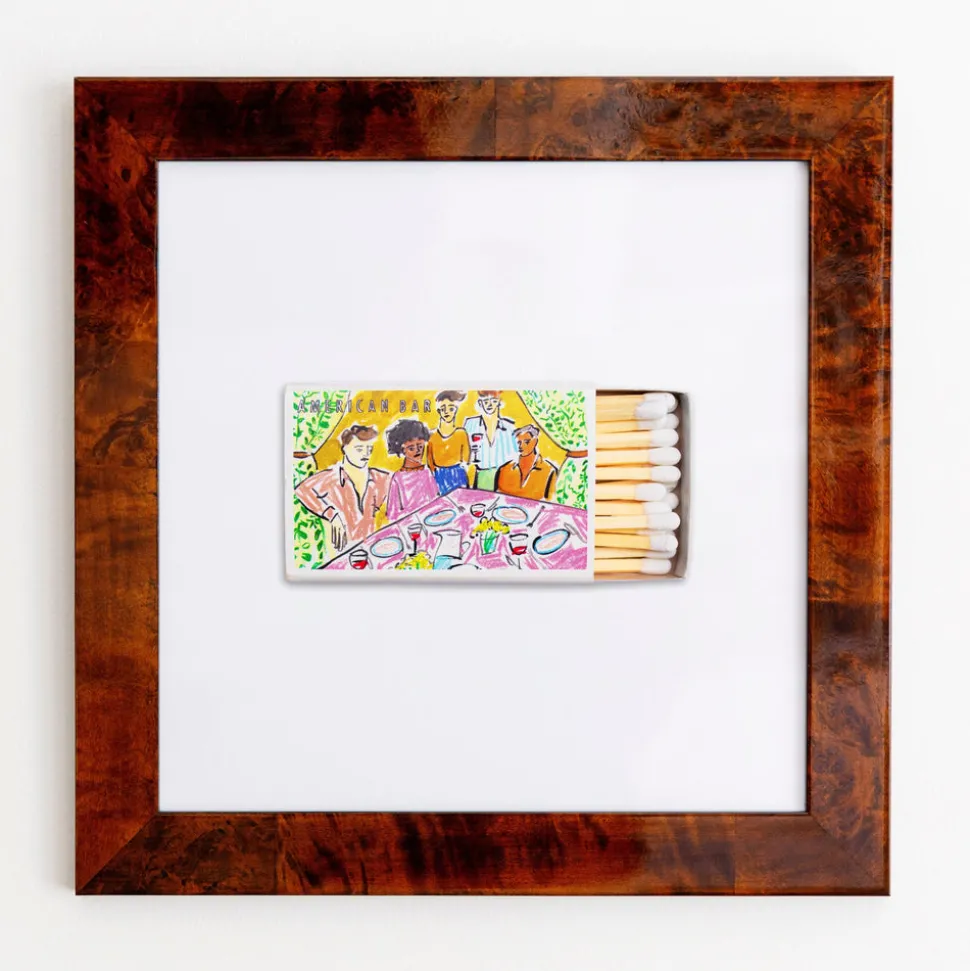 Handcrafted in the heart of Atlanta, Match South frames vintage matchbook images of professional sports teams, golf courses, restaurants, and hometown favorites. Founded in 2015, the brand was created as a passion project to kindle love and support the restaurant industry—designing high-quality photographs of matchbooks from every corner of the country. Nostalgic and colorful, the American Bar frame makes for an effortless styling piece. Available in three colors, these frames have a white flat profile with clear acrylic for safe shipping.