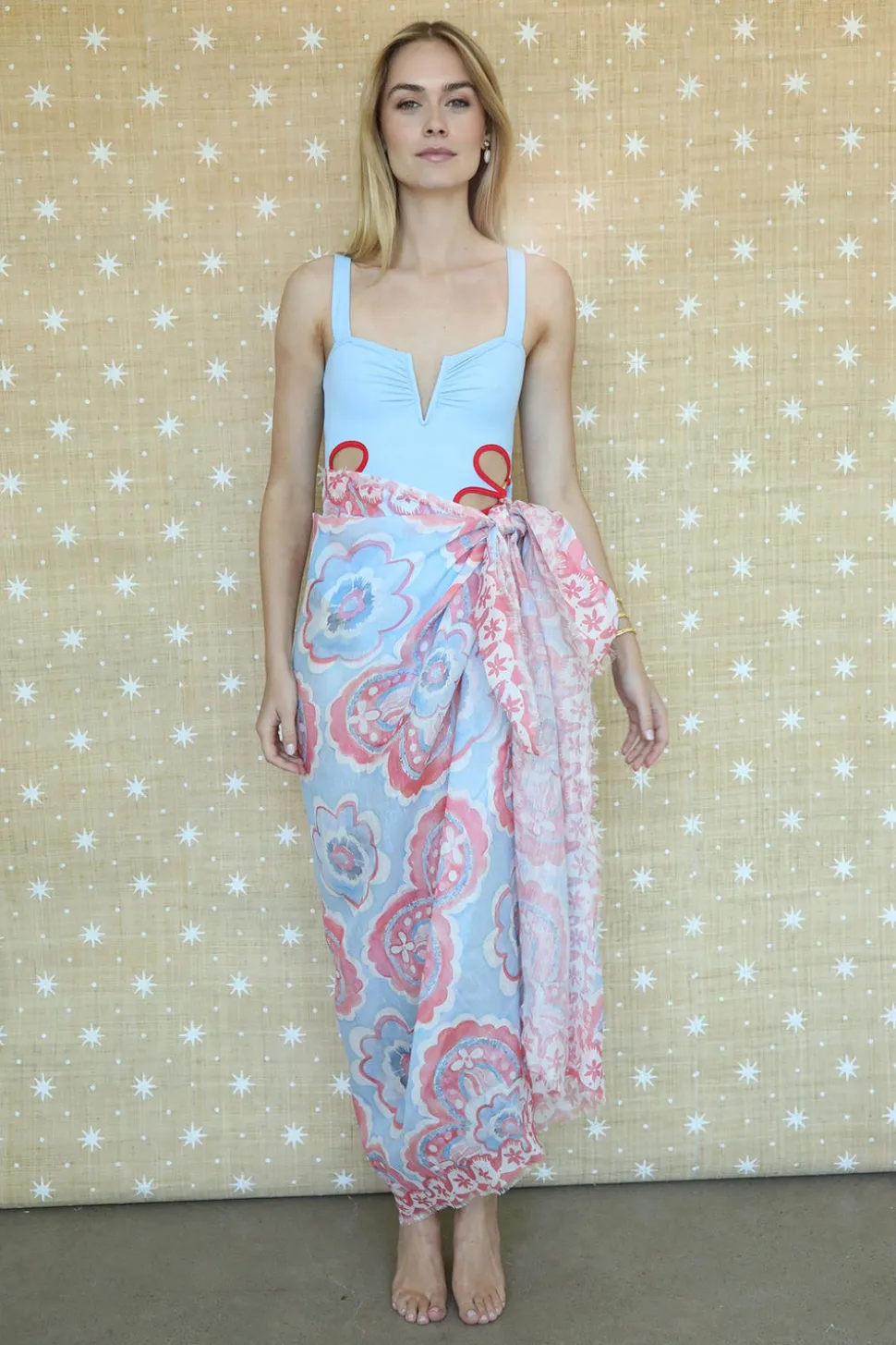 Inspired by art, architecture and the founder’s global journeys, ASHA by Ashley McCormick introduces bold, sophisticated jewelry and accessories made from only the finest materials. From everyday glamour to the red carpet, these statement pieces are classic additions to your collection. The Americana Willow Pareo is handcrafted in Italy from a breathable cotton-linen blend and features a hand-painted clover motif in soft red, white, and blue. Finished with a delicate fringed edge, it’s an effortlessly elegant wrap for beach days, festive escapes, and beyond.
