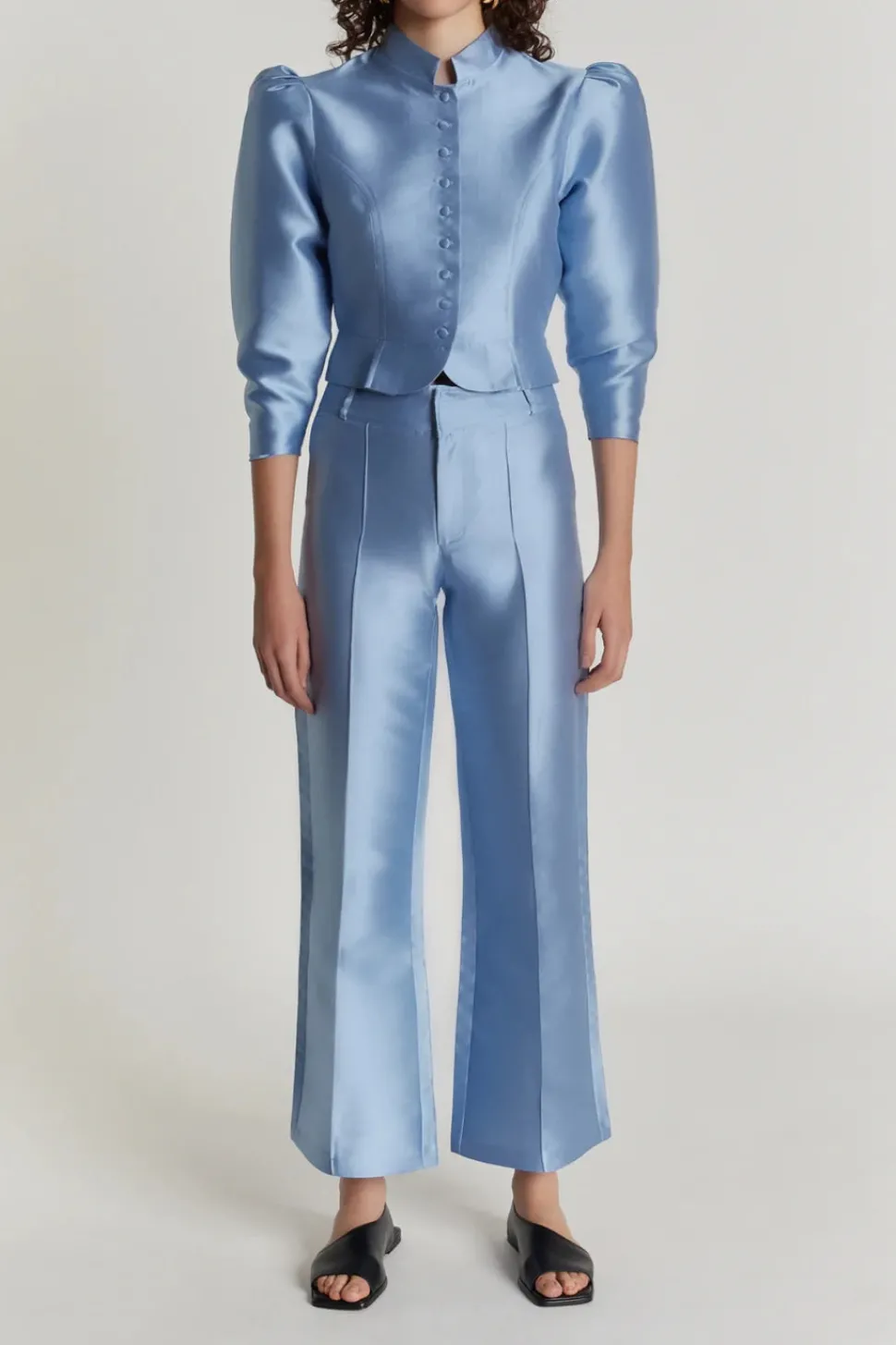Created in 2016 in Paris by Géraldine Guyot and Laetitia Lumbroso, DESTREE is a women’s ready-to-wear and accessories brand that draws its inspiration from the world of contemporary art. Its designs express a colorful and singular passion—a Parisian style that stands apart, finding beauty in visual dissonance and translating it through a bold, graphic, and structured aesthetic. The Amoako Smart Jacket in Blue reimagines 1950s tailoring through a modern lens. This cropped silhouette features a mandarin collar, voluminous puff sleeves, and a cinched waist, creating a sculptural effect that embodies the brand’s signature architectural elegance.