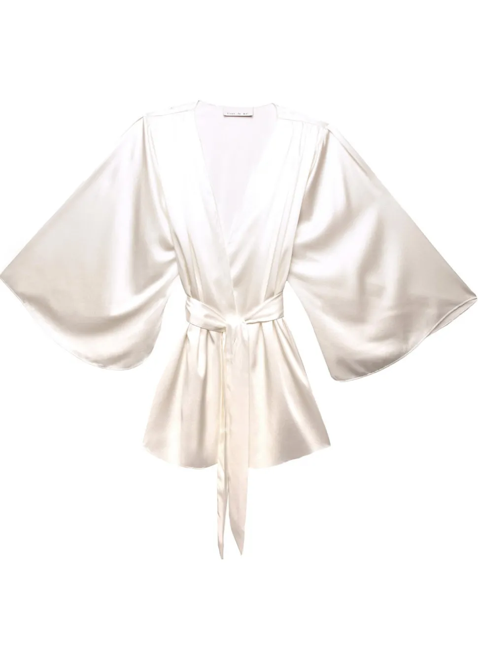 Inspired by Charles Baudelaire’s masterful collection of poetry entitled “Les Fleurs du Mal,” Jennifer Zuccarini founded Fleur du Mal with the belief that wearing beautiful lingerie should be an everyday affair. Tastefully provocative, the luxury brand has amassed a cult following of devotees who adore the sultry and empowering pieces. Heavenly and sublime, the Angel Sleeve Robe features wide sleeves and a wrap-around sash. The robe can be worn as a robe, blazer, or even jacket. Pair with the Gardenia Lace Demi Bra and Thong for the matching look.