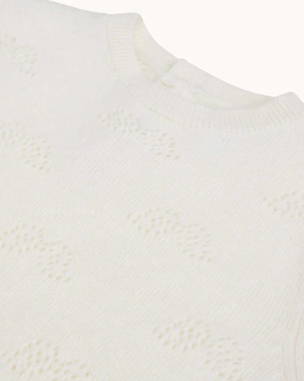 100% cashmere. Rounded neckline with soft tonal rib trims. Footed design and pearlized branded Marie-Chantal buttons. Marie-Chantal’s signature gold Angel Wing tab detailing.