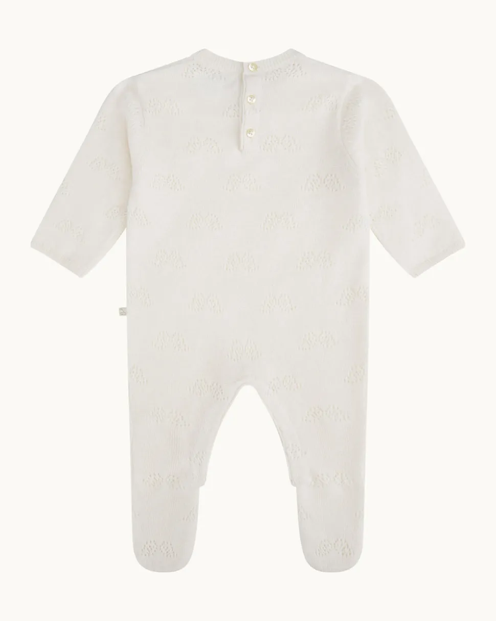 Princess Marie-Chantal of Greece’s eponymous label is known internationally for its unmatched style and quality of materials that lie at the heart of its baby essentials and contemporary children’s clothing. Crafted in a light pointelle knit and cashmere, the Angel Wing Cashmere Pointelle Sleepsuit features the brand’s signature angel wings stitched on the back and press stud fastening for easy changing. This darling sleepsuit offers total cozy coverage.