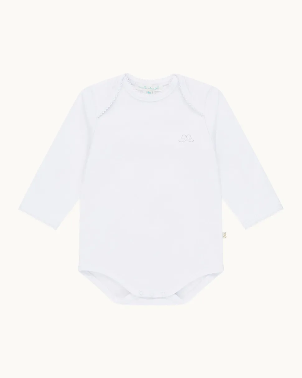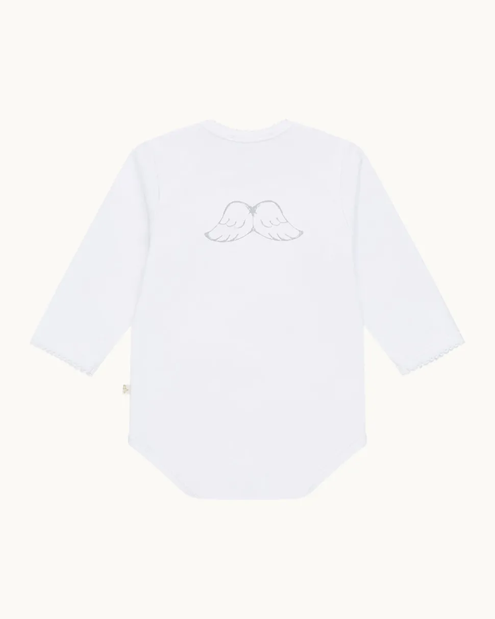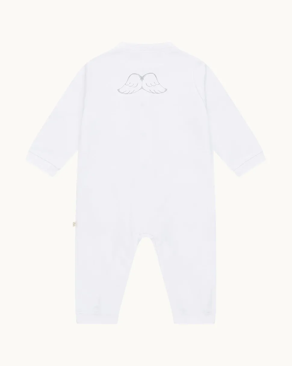 Princess Marie-Chantal of Greece’s eponymous label is known internationally for its unmatched style and the quality of materials—like their organic, hand-picked Pima cotton—which lies at the heart of their baby essentials and contemporary children’s clothing. The Angel Wing Essentials 5 Piece Gift Set includes a long sleeve onesie, sleepsuit, and hat. Convenient popper fastenings make dressing and changing effortless.