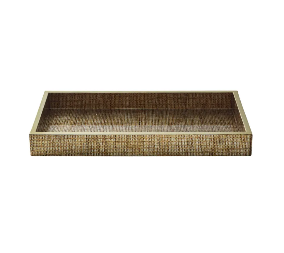 Kim Seybert designs artisan-made tabletop decor and luxury home accessories. Create a well-dressed dining look with the brand’s range of elegant tableware, placemats, runners, chargers, plates, napkins, flatware, and more. The colors of Cambodia’s ancient ruins and temples make their way into the Angkor Vanity Tray. Lacquered raffia with gold accents form these powder room essentials which include a soap dispenser, tissue box, vanity tray and waste basket. Get the full set for a stylish and cohesive look.