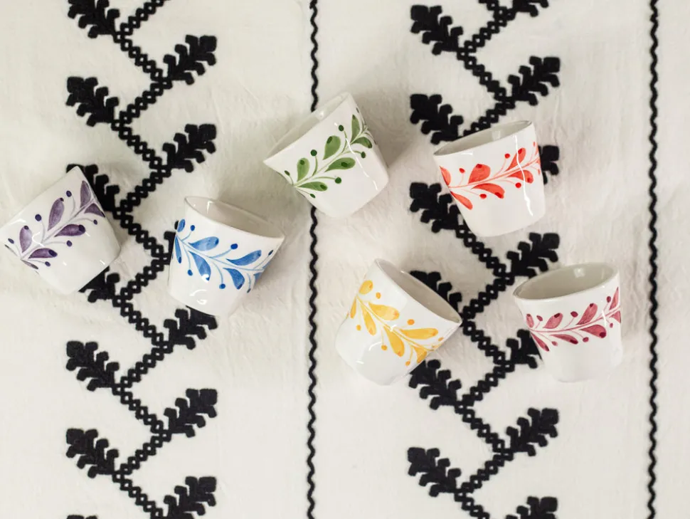 Founded by textile designer Carolina Irving and her two daughters, the intrepid label collaborates with artisans across the globe to curate homeware with rich stories. The Anna Espresso Cup, Set of 4 is made for entertaining. Inspired by an antique Greek dish featuring an intricate olive decoration, the Anna has been reworked in a more simplistic style.